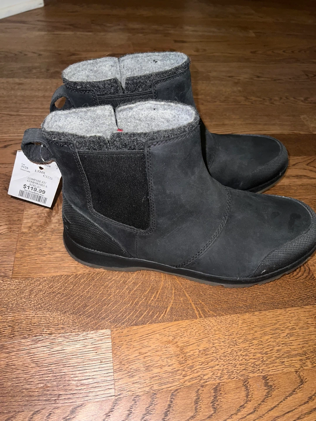 Waterproof Sorel Ankeny II Chelsea OD boots for men. Features a waterproof construction and comfortable fleece lining. They're great for wet weather and casual wear. Rubber sole provides good traction.