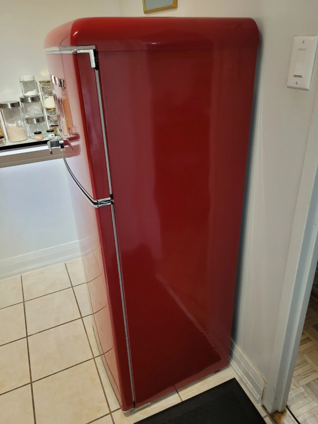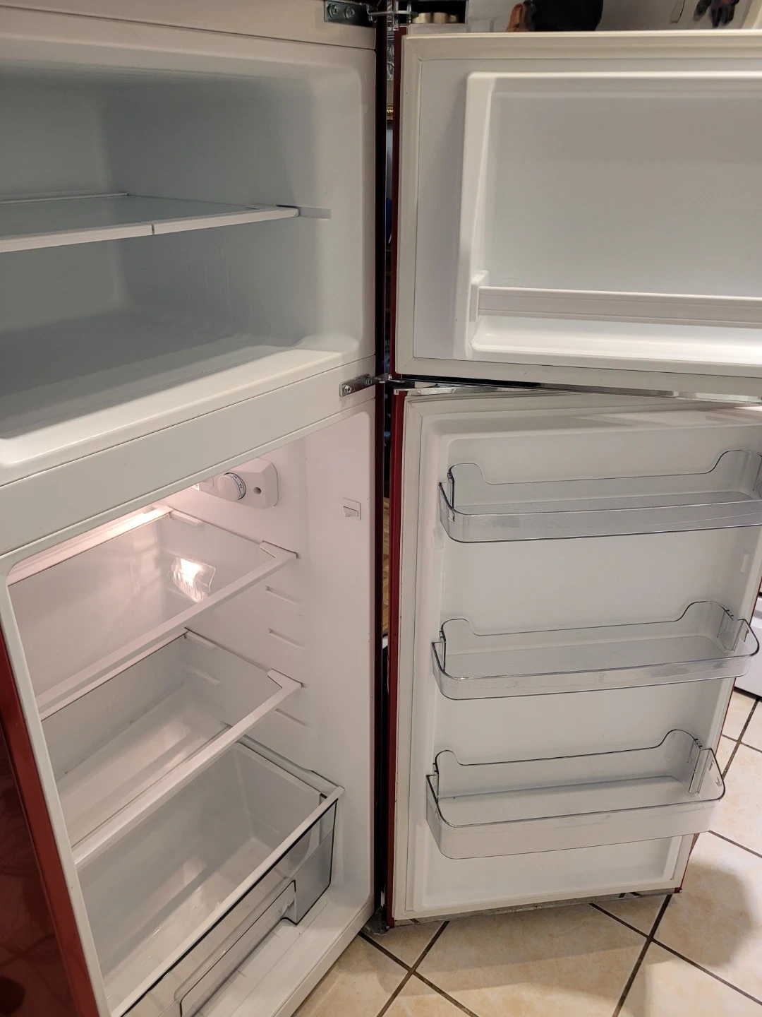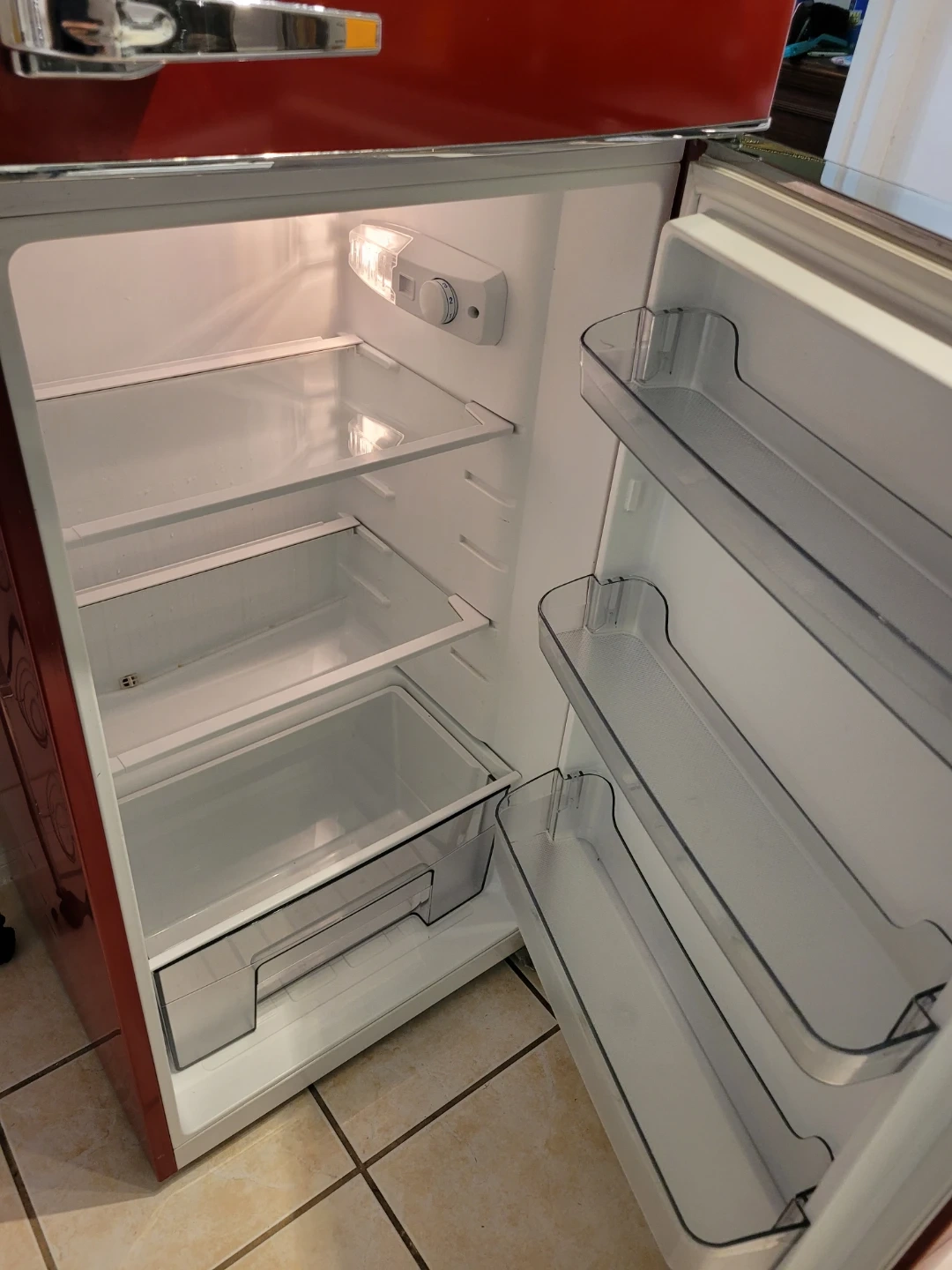 Selling a Galanz retro-style refrigerator in a vibrant red colour. This fridge adds a unique touch to any kitchen with its vintage design. It’s in great condition and ready to keep your food fresh and cool!