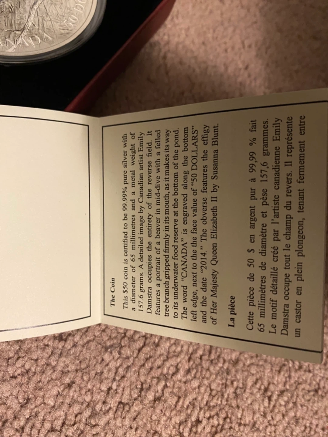 Royal Canadian Mint 2016 $50 Fine Silver Coin Wanduta & beaver