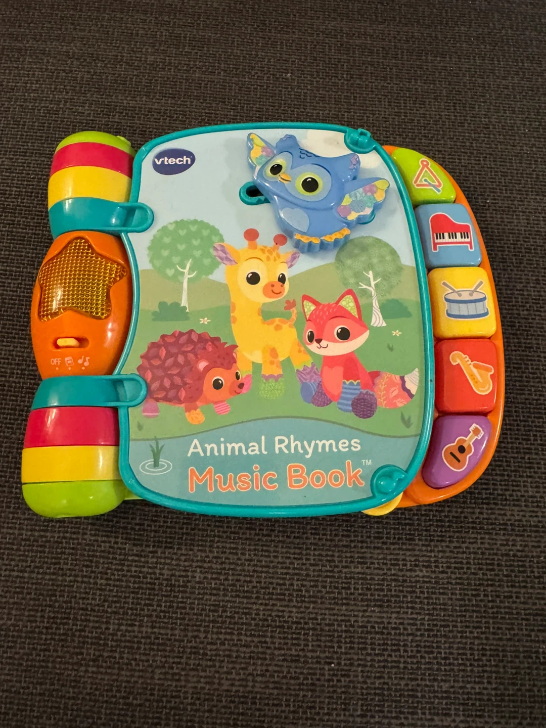 I'm selling a VTech Animal Rhymes Music Book! It's in great shape and ready for a new little one to enjoy. This interactive book is perfect for introducing your child to animals and music. It has colourful pages and fun sounds that will keep them entertained for hours