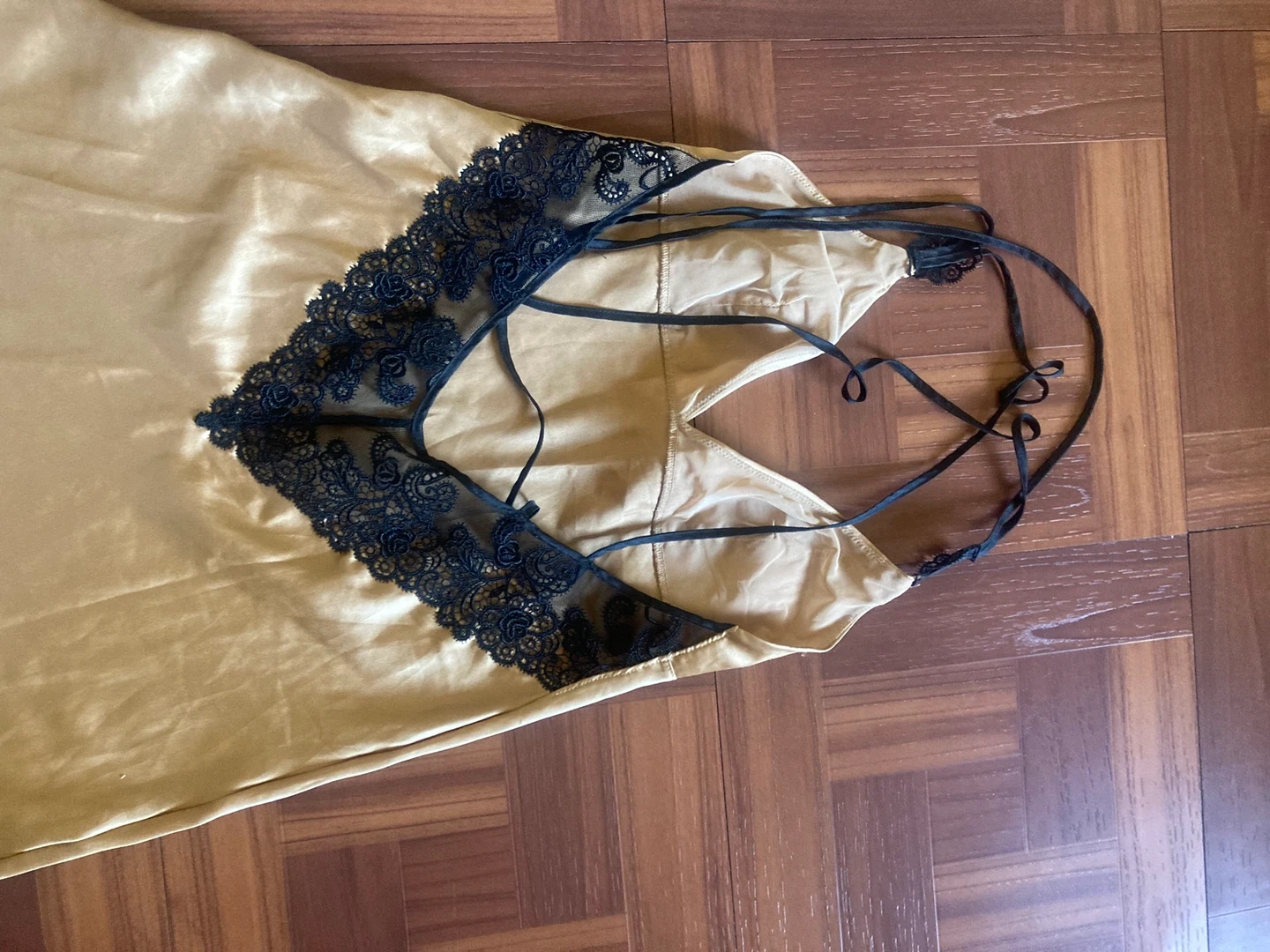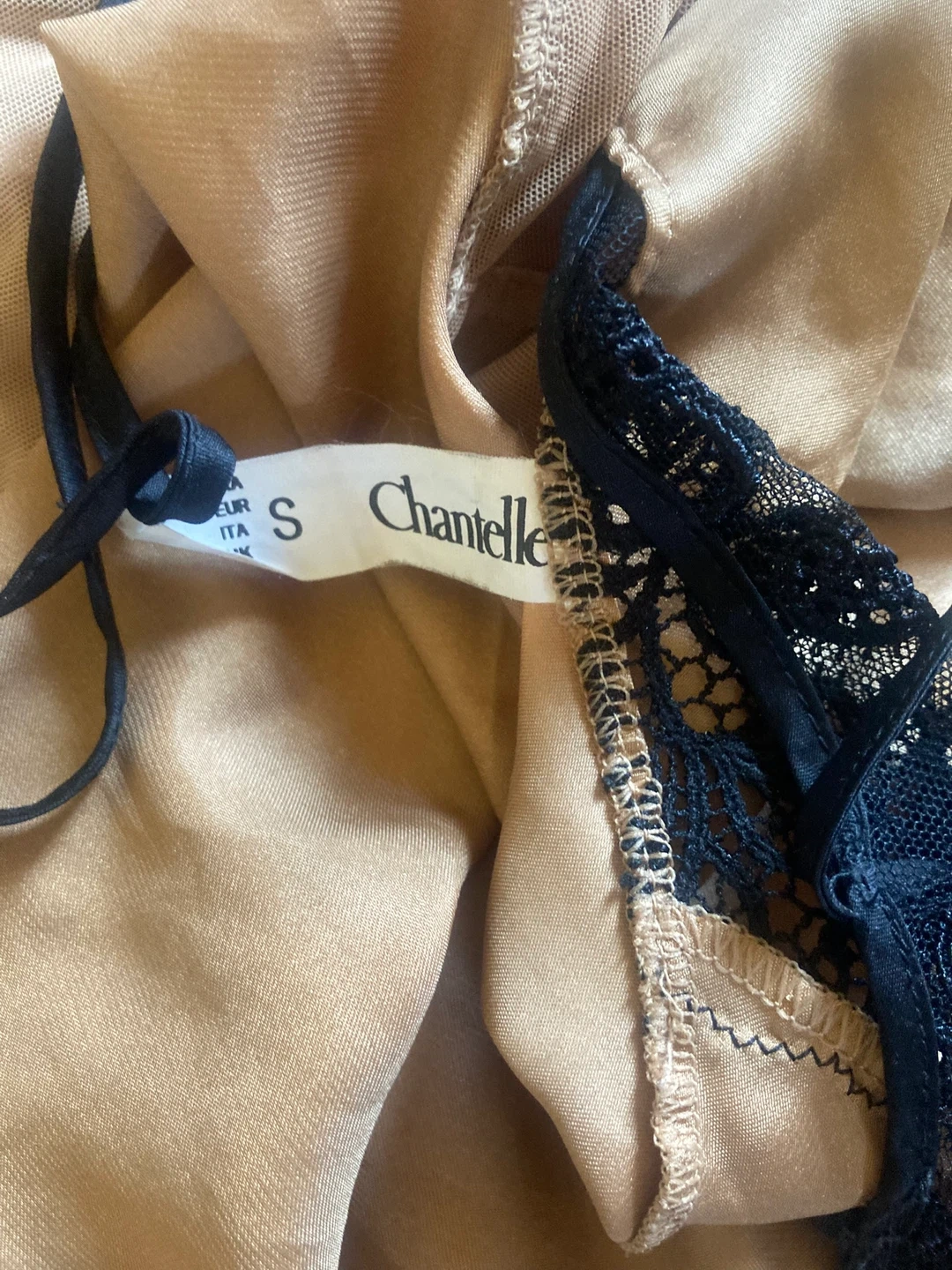 Selling a Chantelle slip dress in size small! It features a beige color with beautiful black lace detailing. Perfect for a night out or lounging at home