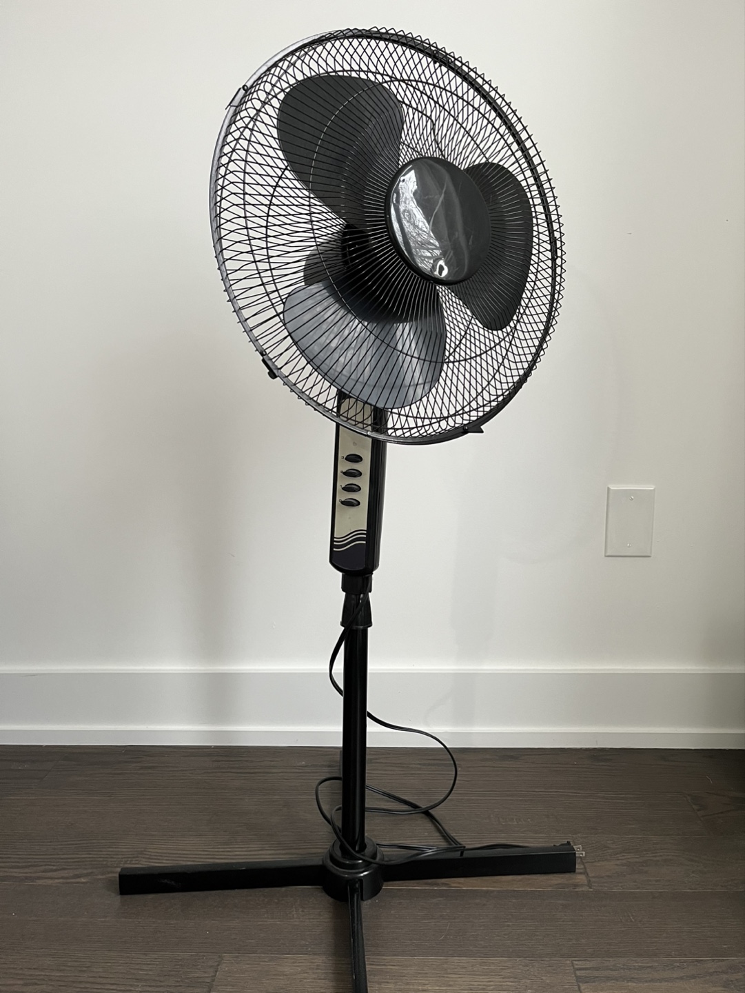 Oscillating stand fan. Three speeds & adjustable height. Still works great just no longer needed. Perfect for summer if you don’t have A/C!