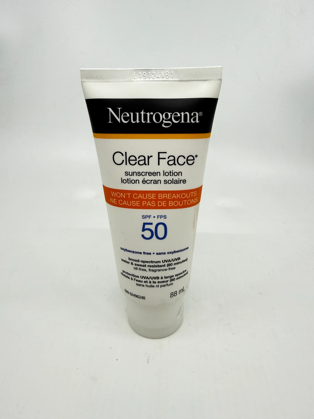 Selling a tube of 88ml Neutrogena Clear Face sunscreen with SPF 50.