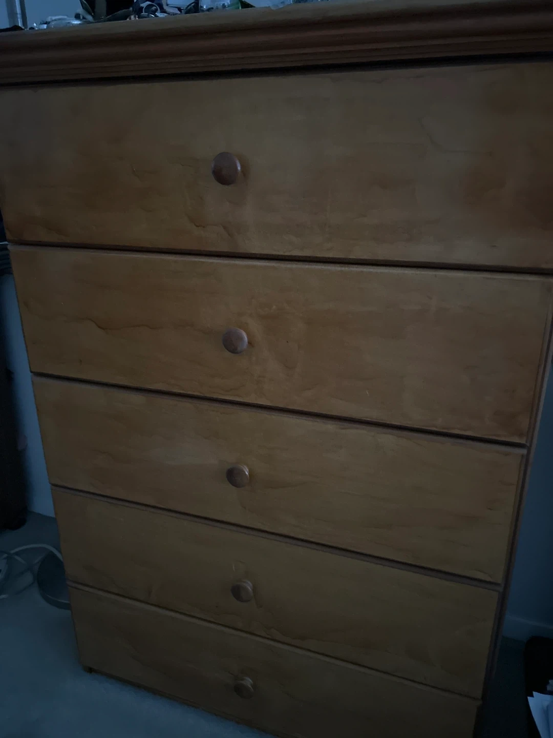 Buy & SellWooden 5-Drawer DresserWooden 5-Drawer Dresser$40This is a light wood 5-drawer dresser. It has simple round wooden knobs. It's a good size for a bedroom.ConditionGoodWHERE TO MEETCheck LocationView MapSELLERKCChelsea100 reviews5 chats·6 favorites·233 viewsSEND CHAT TO SELLERHi KC! I’m interested in your listing.Hi KC! I’m interested in your listing.Get the Karrot app to chatSign In to chat