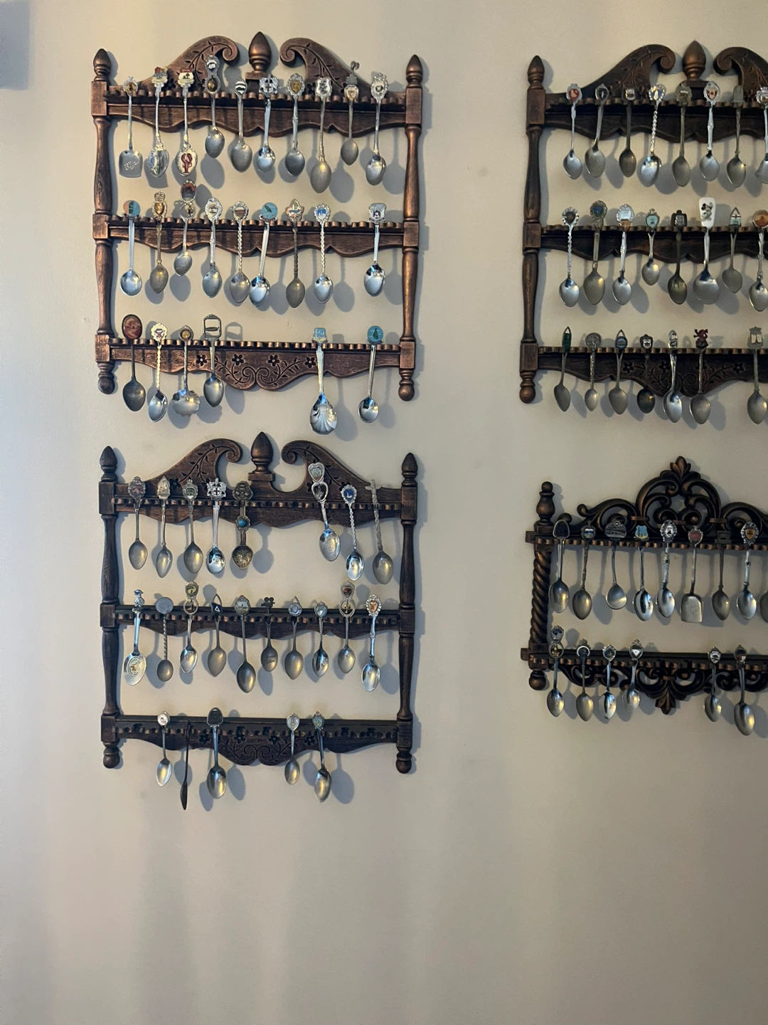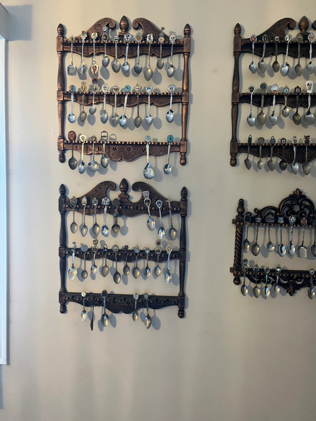 Selling a collection of vintage spoon display shelves. They add a touch of old-world charm to any room. Perfect for collectors or anyone looking to add unique decor to their home. They are in good condition and ready to display your prized spoons! The racks are copper craft. Comes with spoons