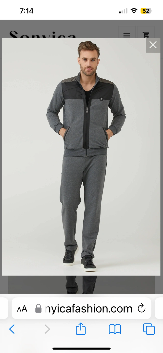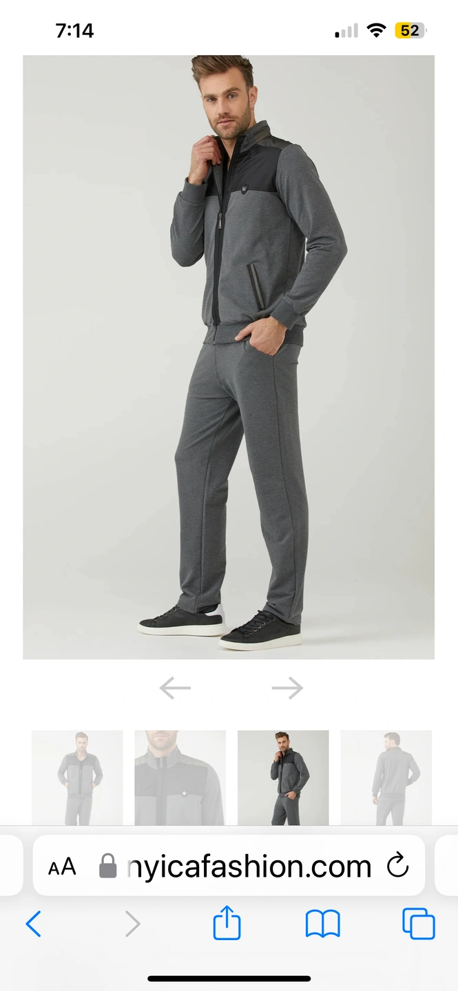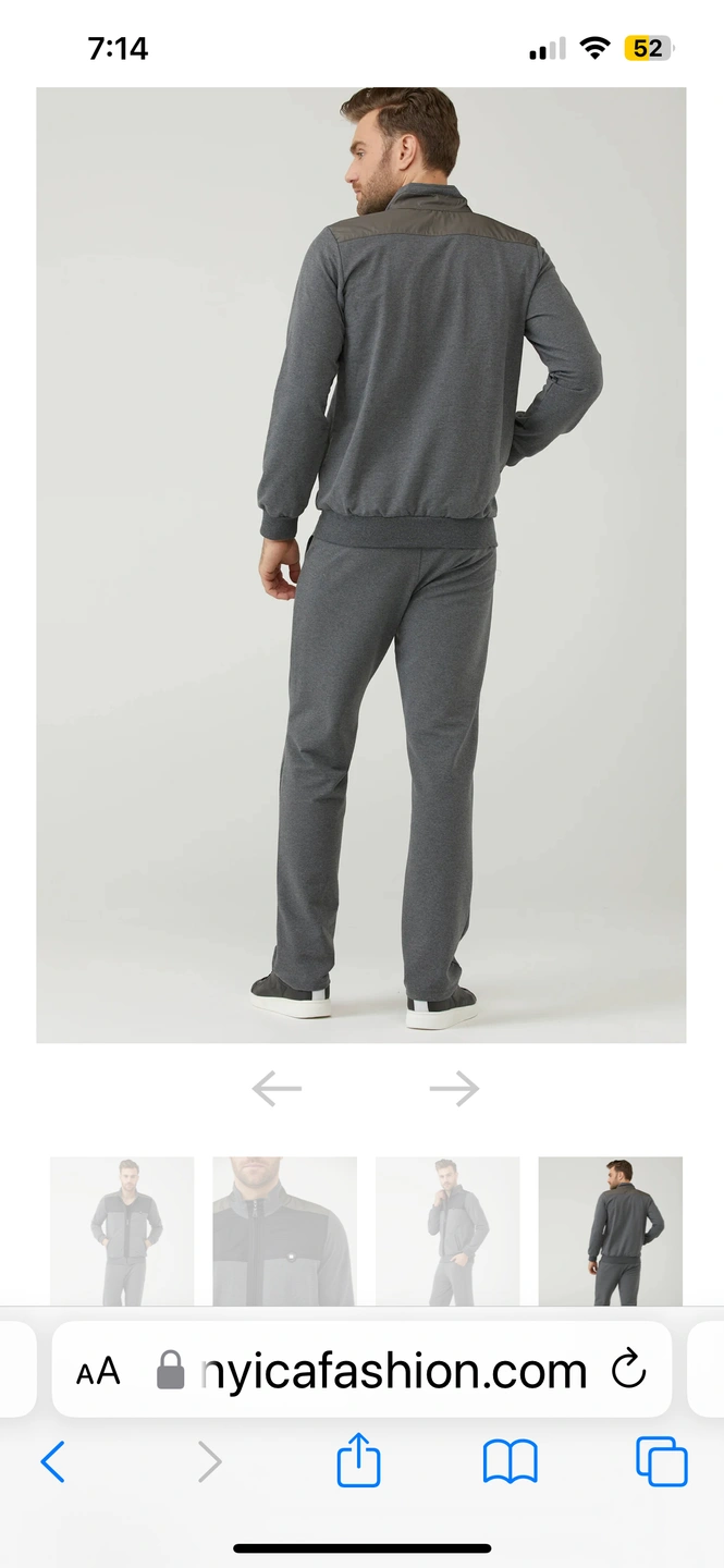 Brand new. Men’s grey, city wear, two piece tracksuit with hoodie, drawstrings full front, zipper and faux leather detail. Matching pants come with front pockets.