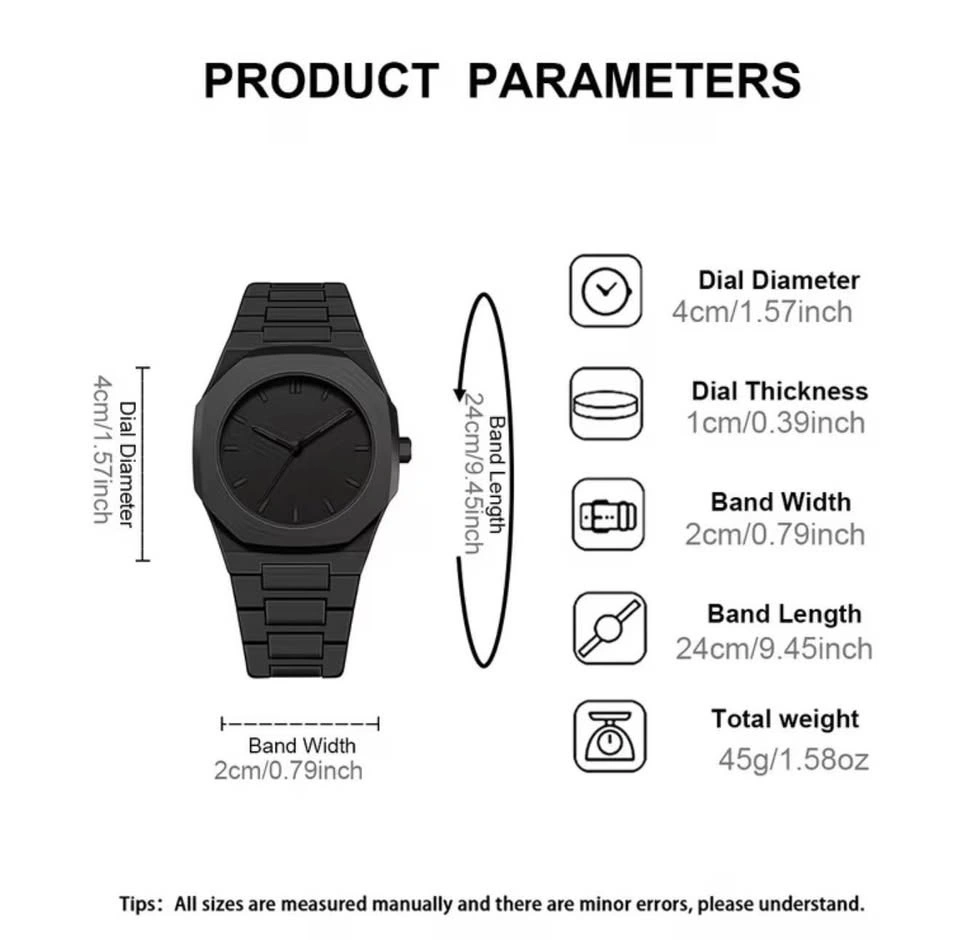 A single piece of minimalist modern black quartz watch, suitable for both men and women. Ideal for casual and formal occasions. It makes a perfect gift for birthdays and graduations. Box included.
