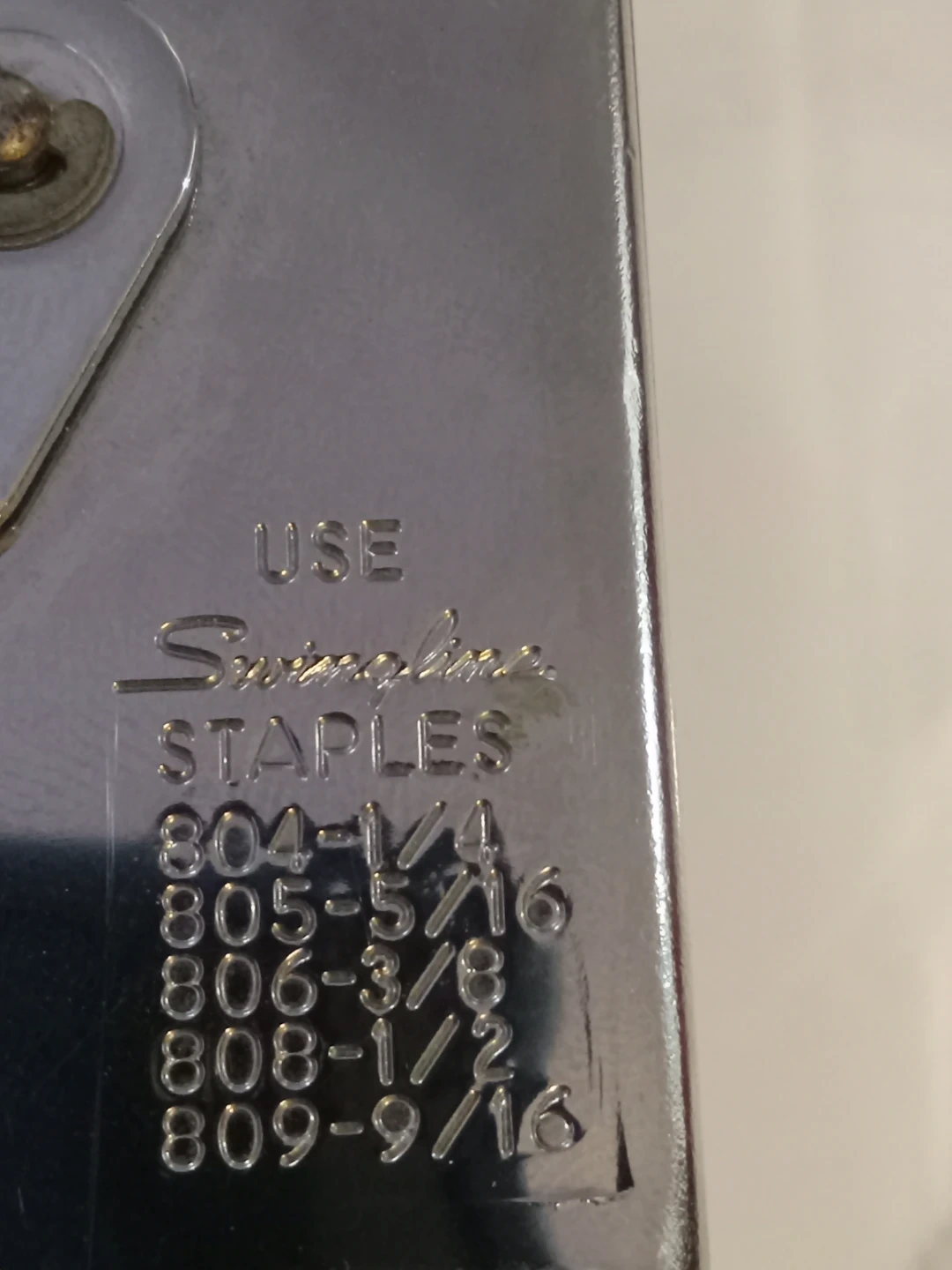 This is a metal Swingline staple gun. It's designed for use with Swingline staples. Various staple sizes are compatible, including 804, 805, 806, 808, and 809 series.