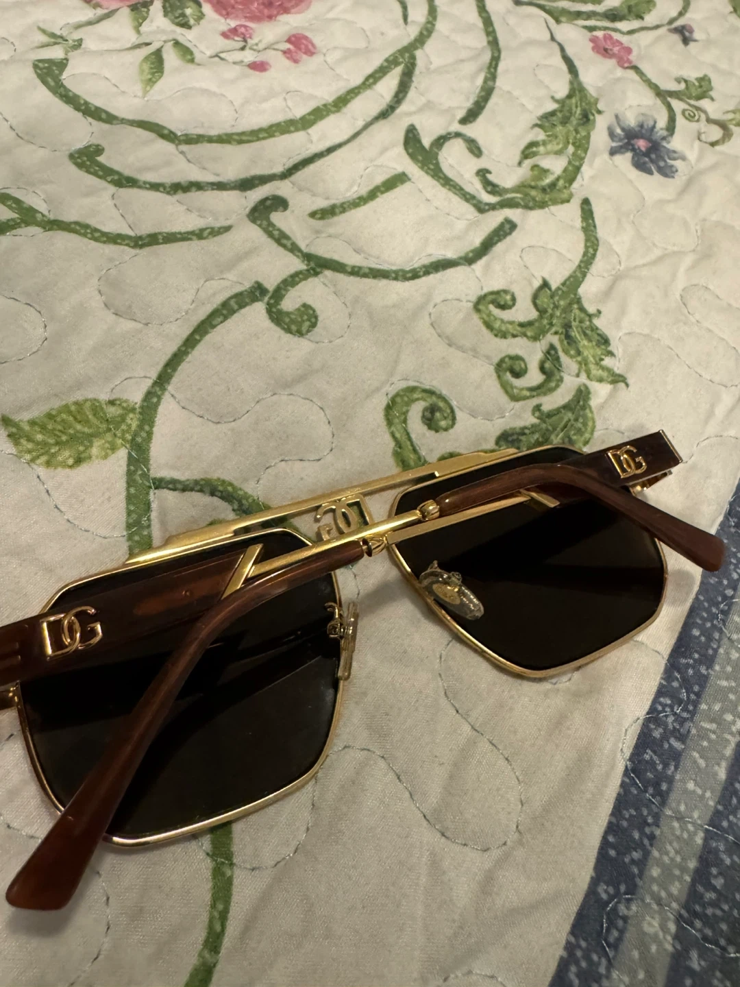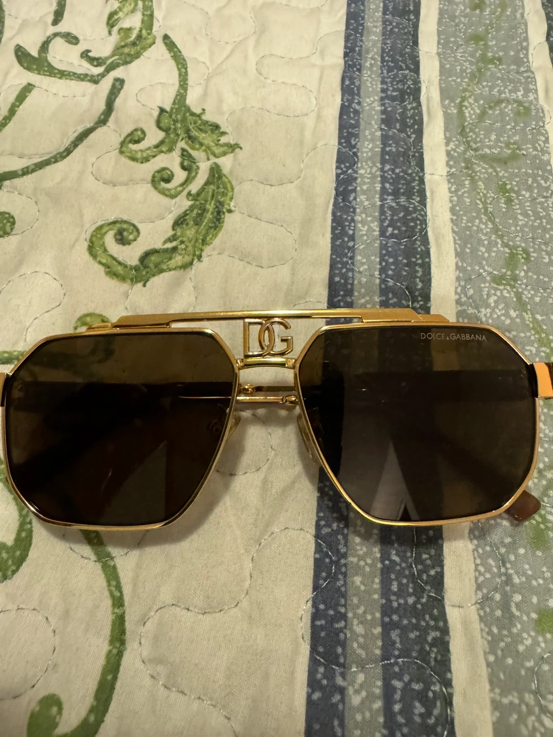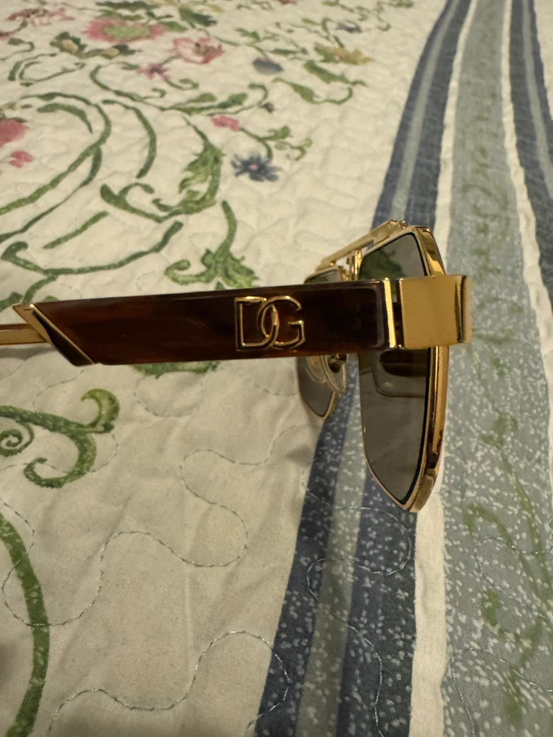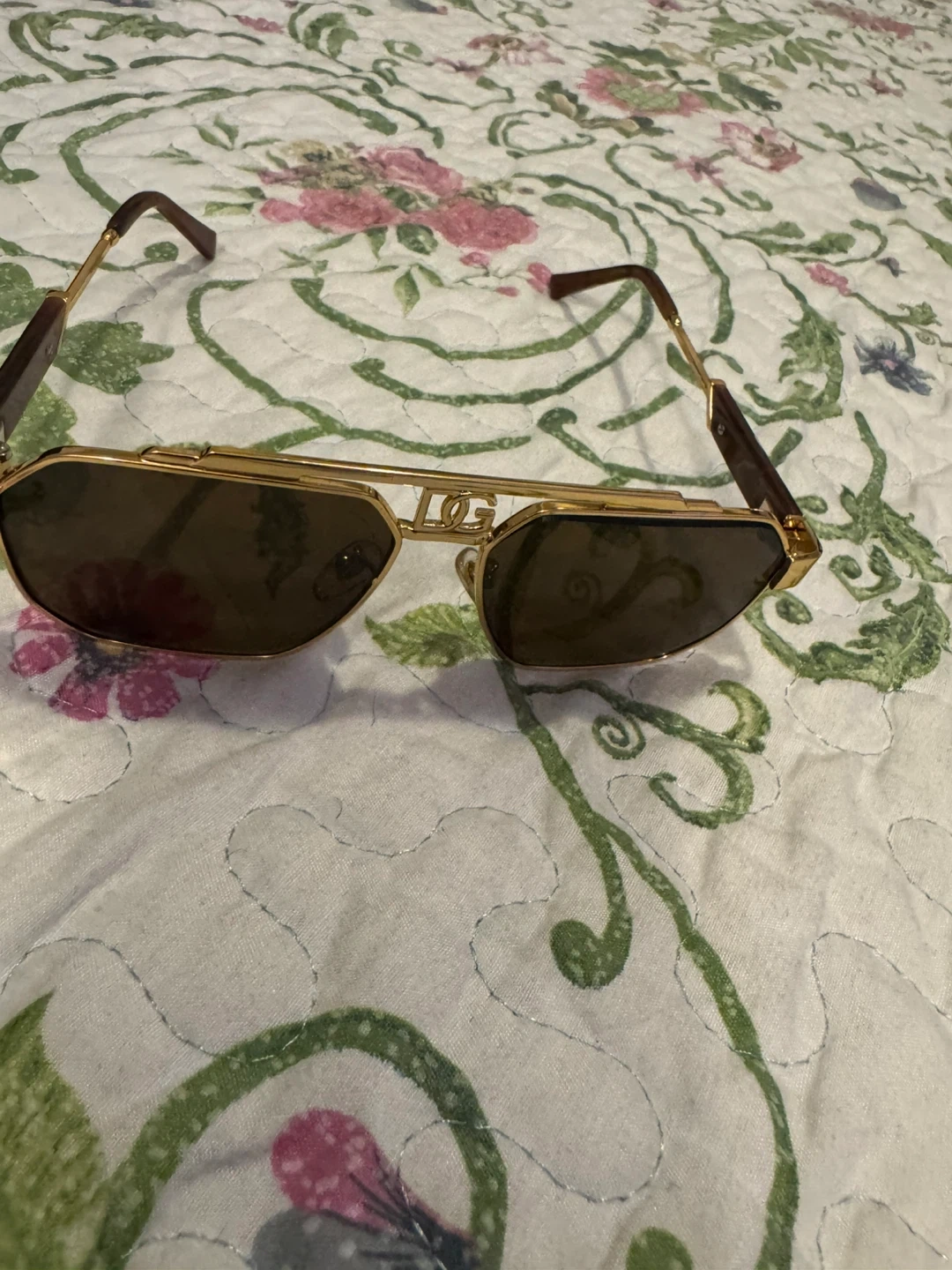 Selling a pair of Dolce & Gabbana sunglasses! They feature a gold frame and brown accents. Stylish and in great condition!