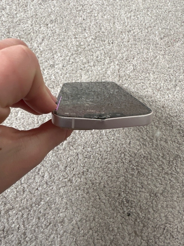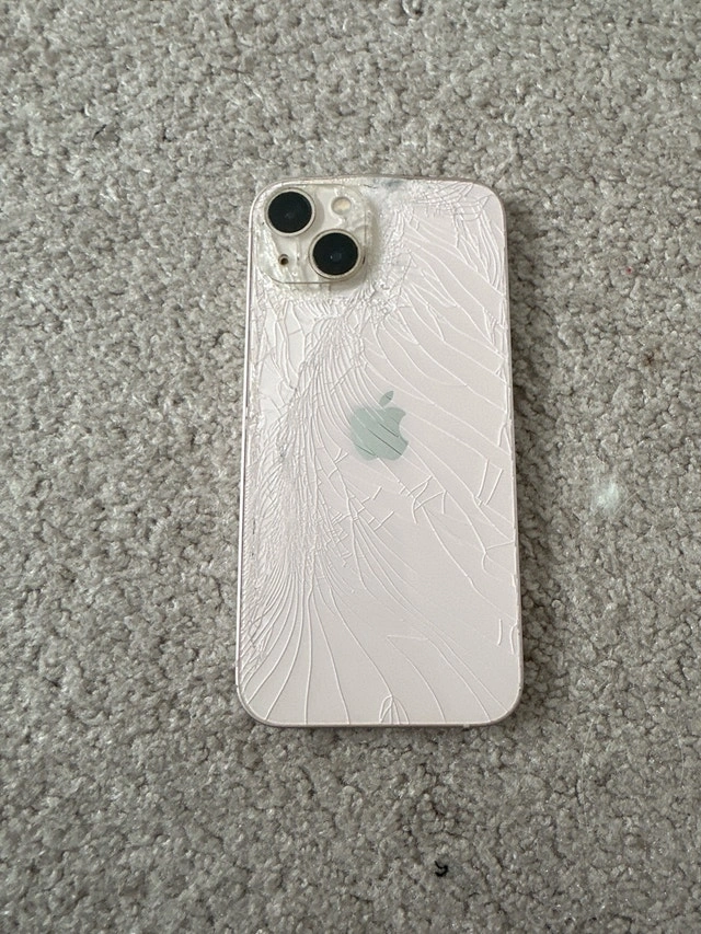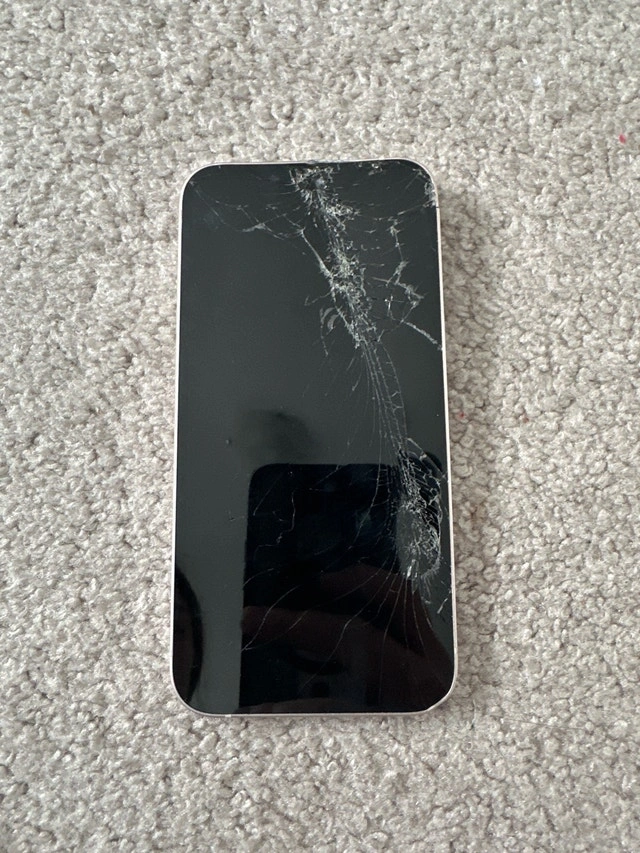 Used iPhone 13. Very cracked/bent but still functioning. Screen is black in some places and cameras are damaged. Can be used for repair/parts. Factory reset. 128GB storage. Please reach out if you have any questions!