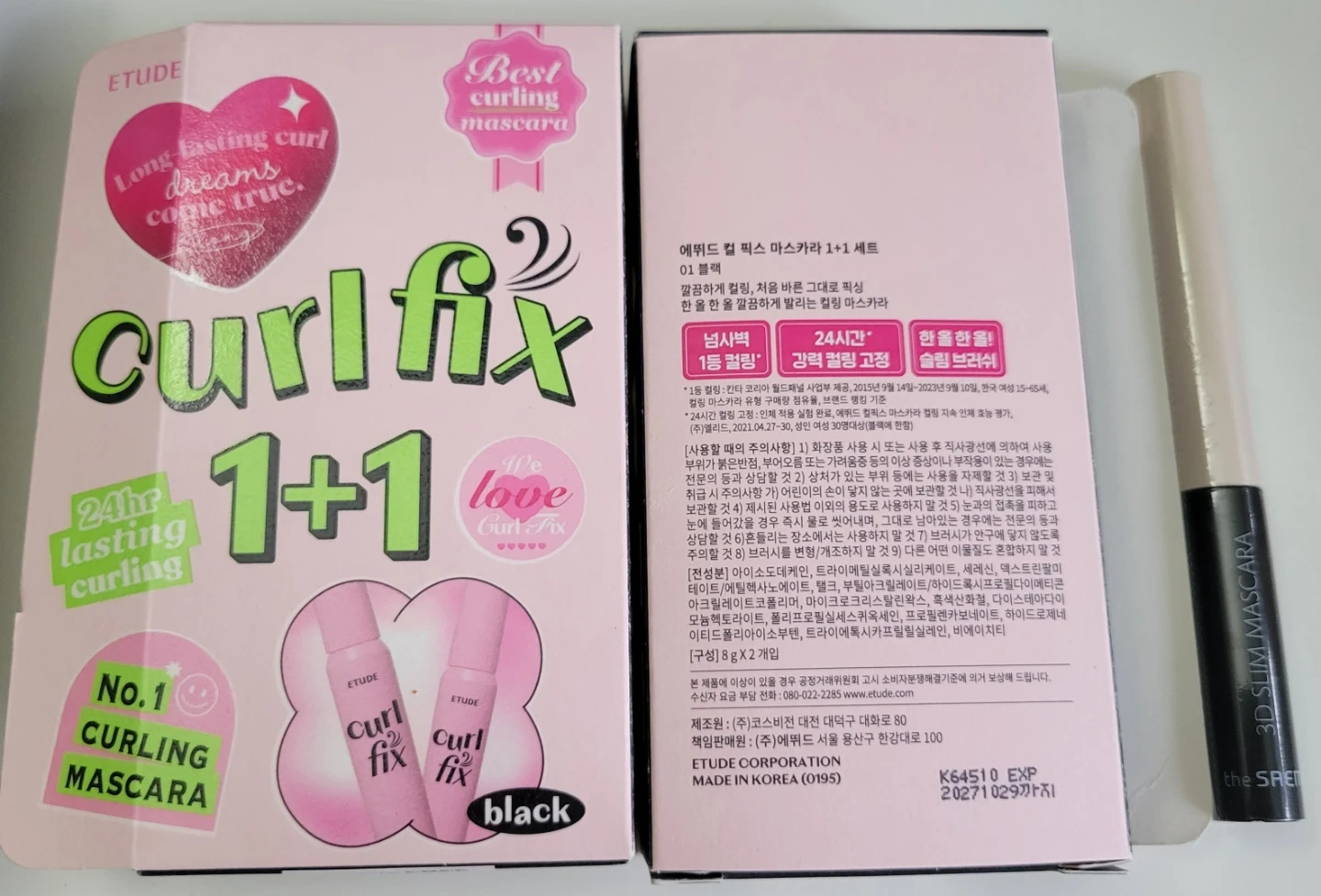 • Etude Curl Fix Mascara (Black) – 1 box includes 2 mascaras