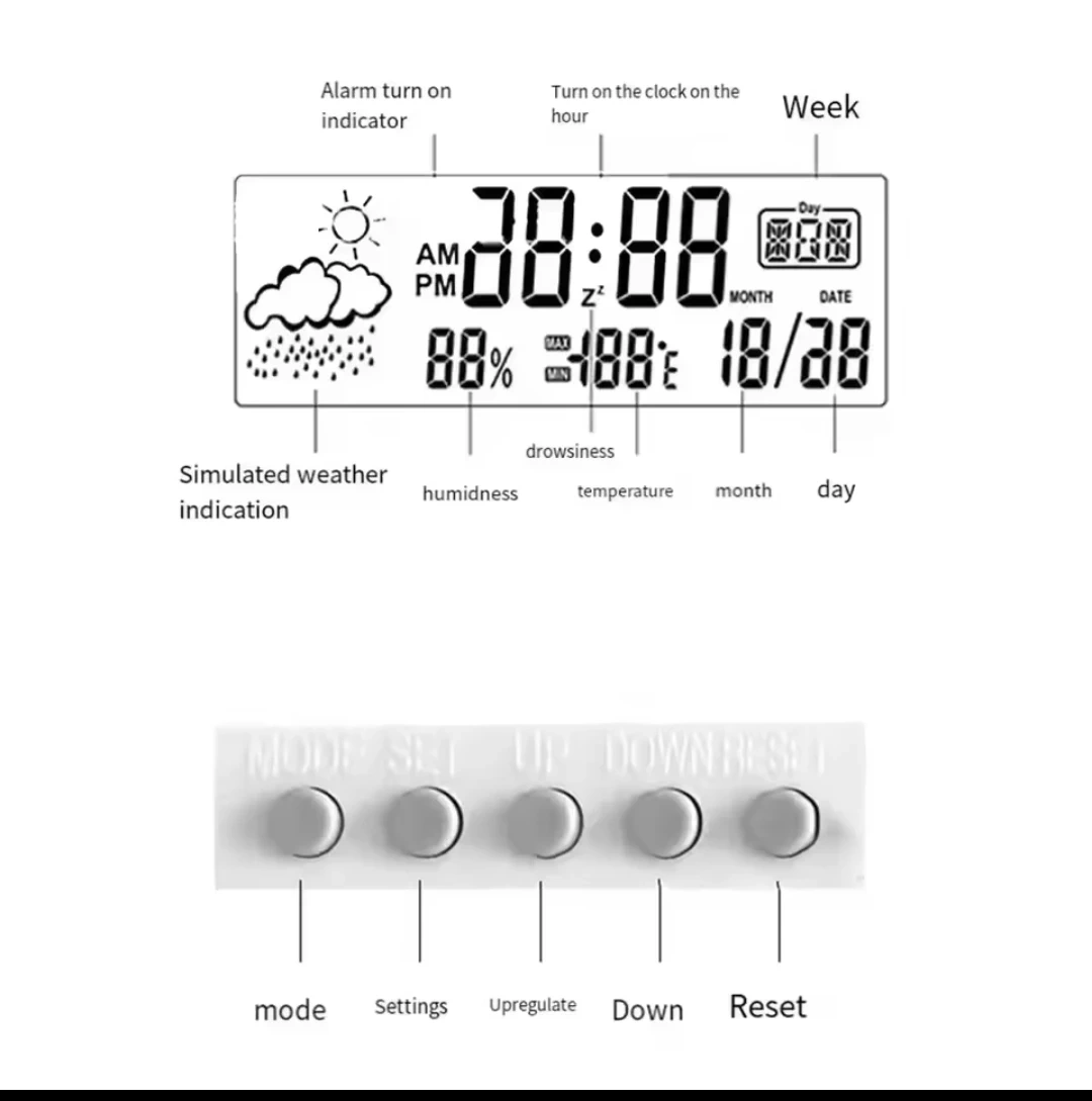 LED Alarm Clock with Calendar and Day of the Week, Temperature C / F, Humidity and Graphical Weather Display