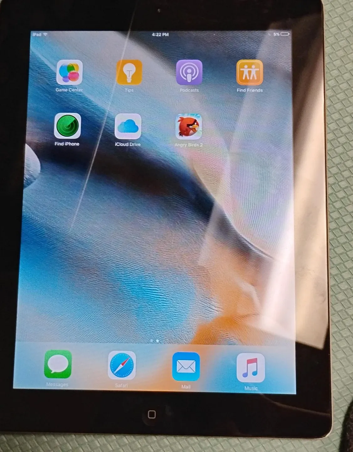 This is an Apple iPad tablet. It's a black model with a Retina display. Includes pre-installed apps like Safari and Messages.