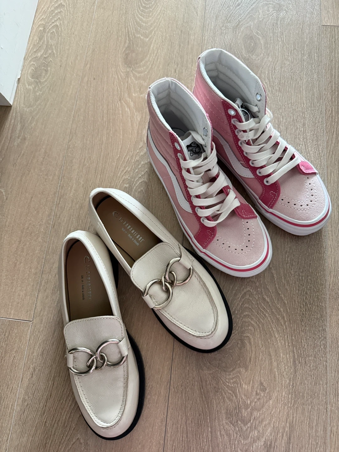 New Vans Pink Sneakrrs & White Loafers - Size 6