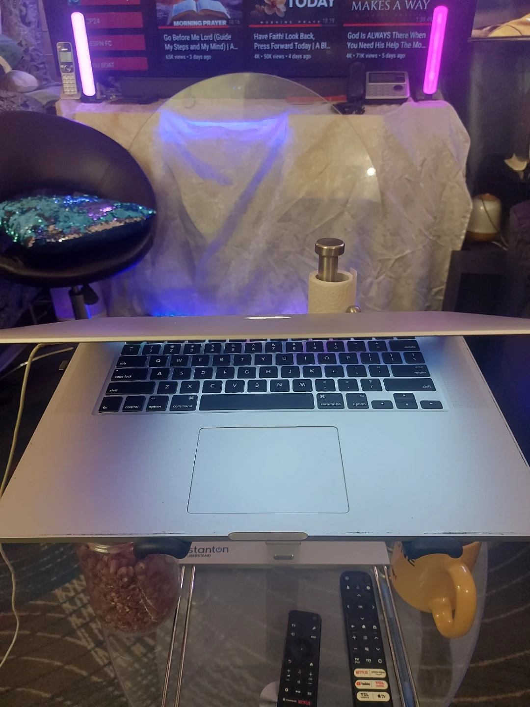 This Apple MacBook Pro laptop features a silver aluminum body. It's a reliable machine for everyday tasks. It has a spacious trackpad and backlit keyboard for comfortable use.