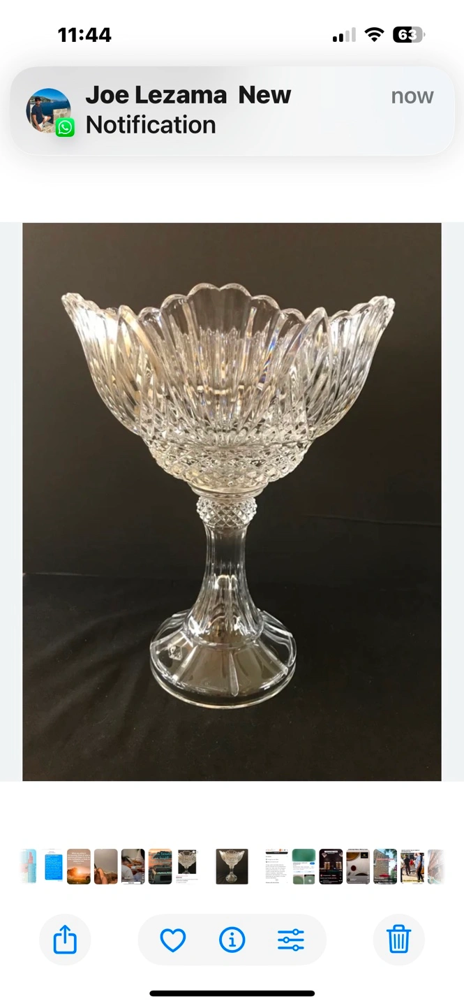 By Shannon of Ireland. Elegant crystal bowl. Features a pedestal base and scalloped edge. Perfect for parties or special occasions.