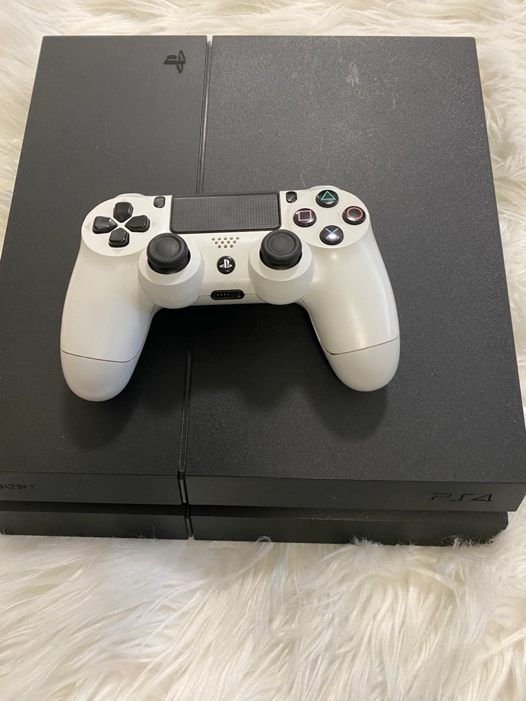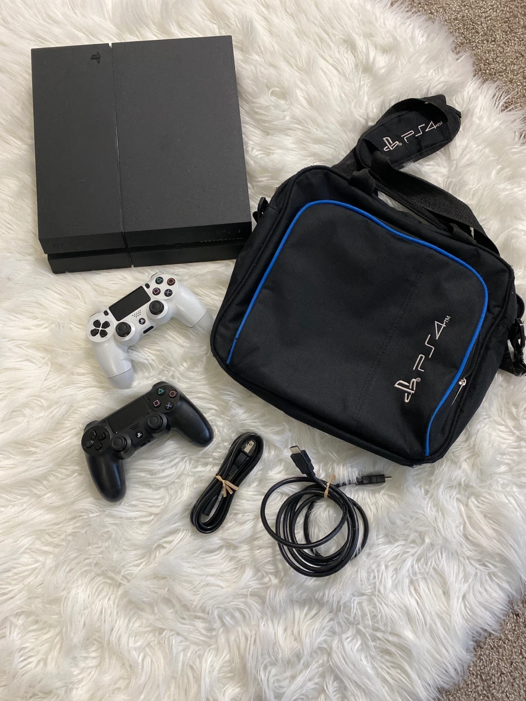Selling a black Sony PlayStation 4 console. It comes with two DualShock 4 controllers: one black and one white. Great for gaming with a friend!