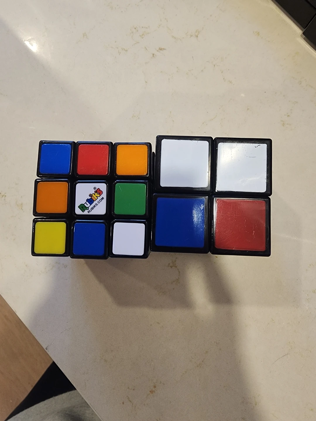 Two Rubik's cube - one with 4 squares per side. One with 9 squares per side