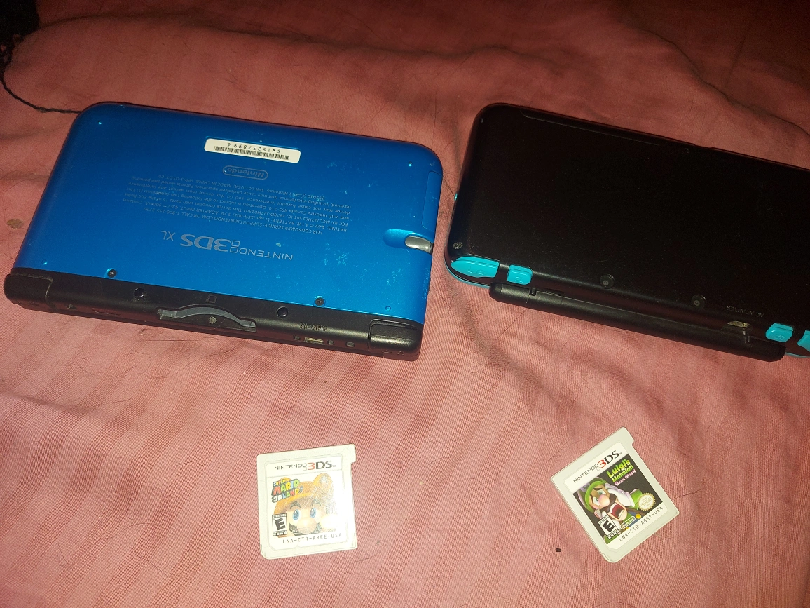 Selling a Nintendo 3DS XL and a Nintendo 2DS. Both come with game cartridges! The 3DS XL is blue and the 2DS is black with blue accents. They are both in good condition and ready for a new home no chargers