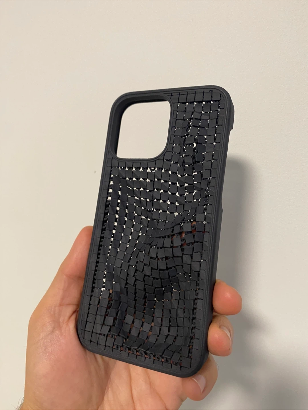 3D Printed limited edition phone case with a unique textured design. It's made from a durable material, offering protection for your device. Luxury phone case!