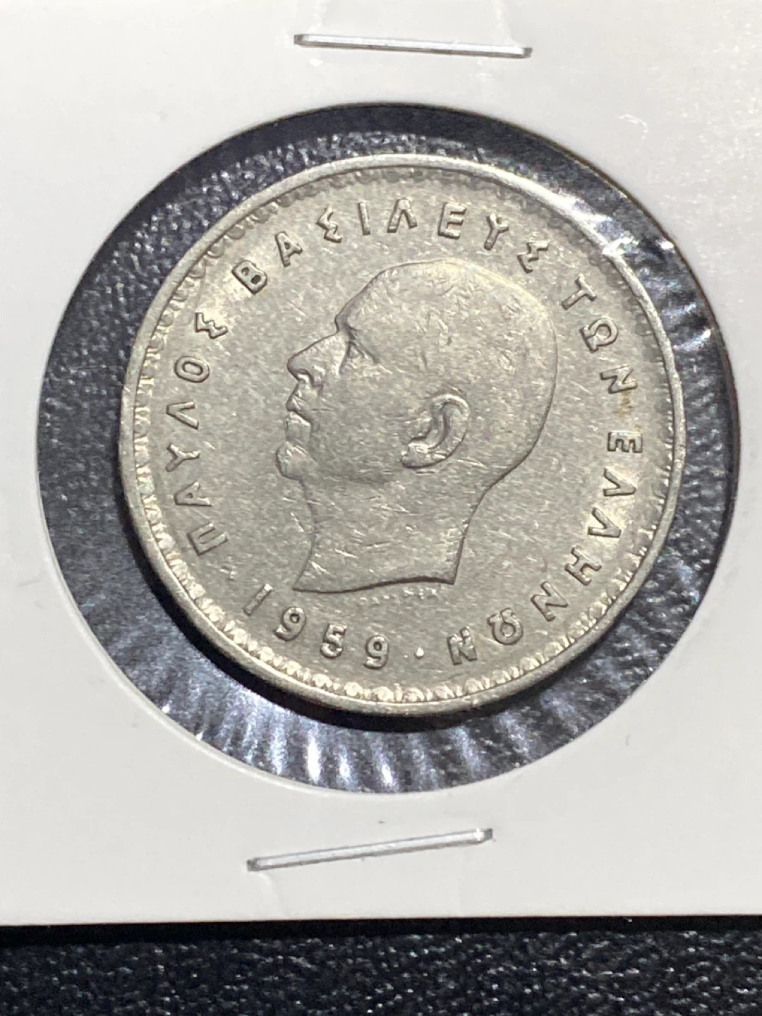 Buy & Sell1959 Greece 10 Drachmas Coin1959 Greece 10 Drachmas Coin$5This is a 1959 10 Drachmas coin from Greece. The coin features King Paul on one side and the Greek coat of arms on the other. It's made of metal.WHERE TO MEETCheck LocationView MapSELLERverifieddiamondCorso Italia67259 reviews0 chats·0 favorites·5 viewsSEND CHAT TO SELLERHi diamond! I’m interested in your listing.Hi diamond! I’m interested in your listing.Get the Karrot app to chatSign In to chat