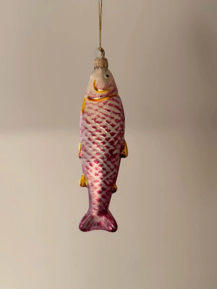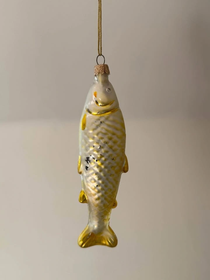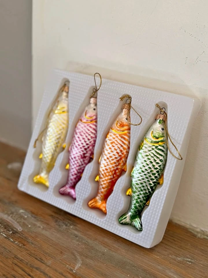 Vintage 1980s Glass Fish Christmas Ornaments Set - Nautical Holiday Decor