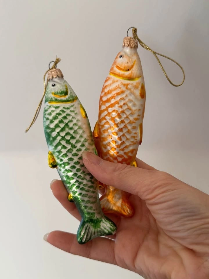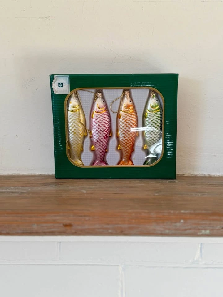 Vintage 1980s Glass Fish Christmas Ornaments Set
