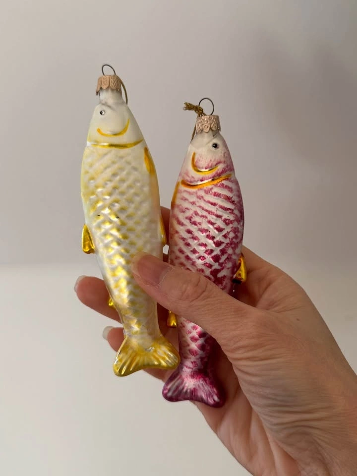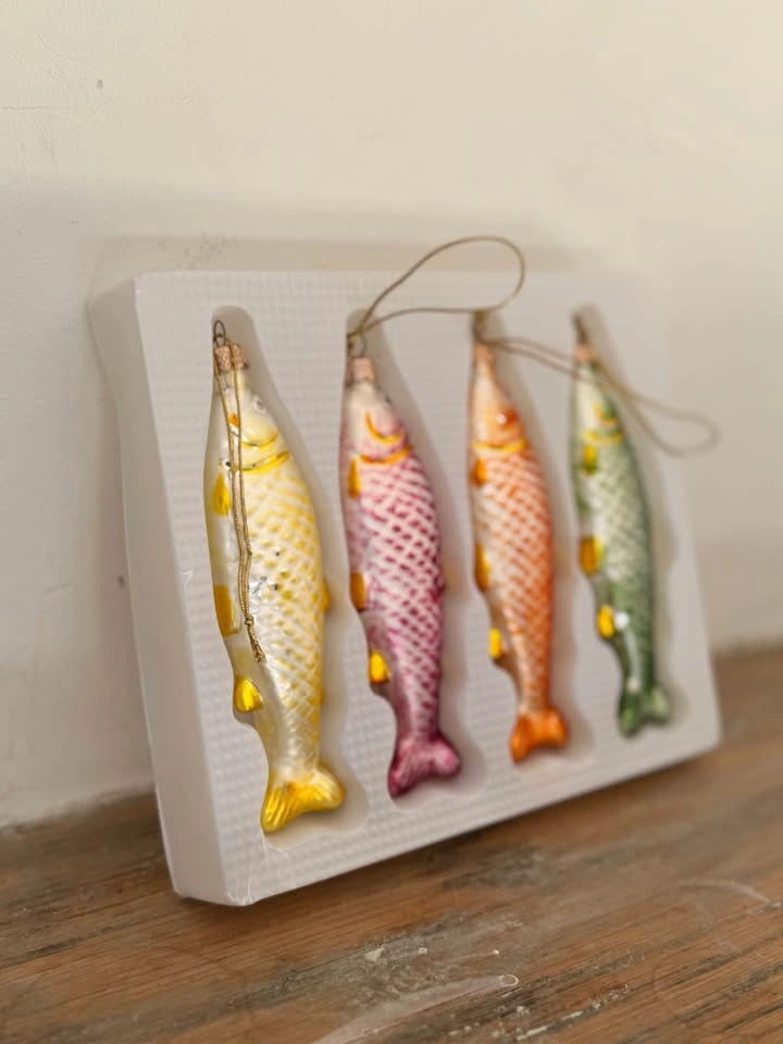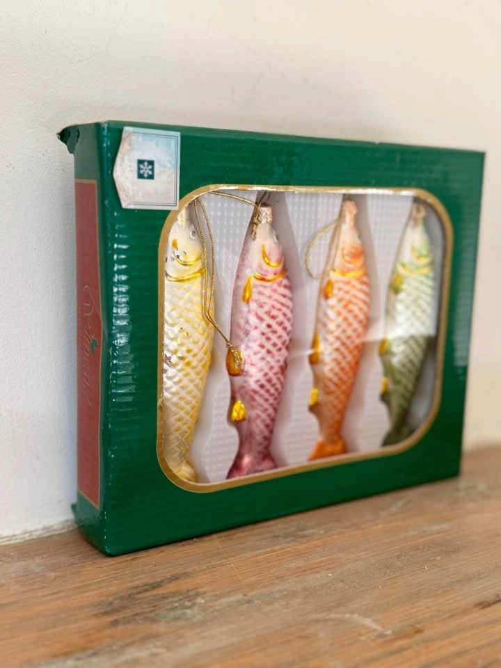 Vintage 1980s Glass Fish Christmas Ornaments Set