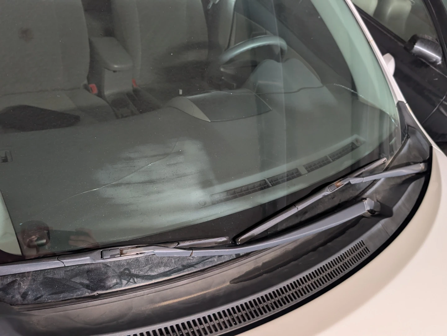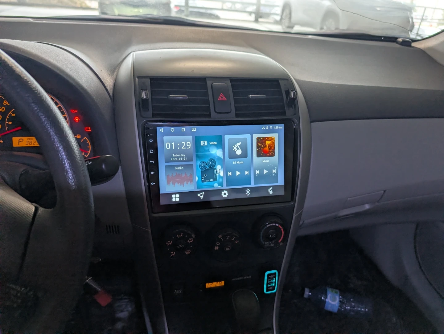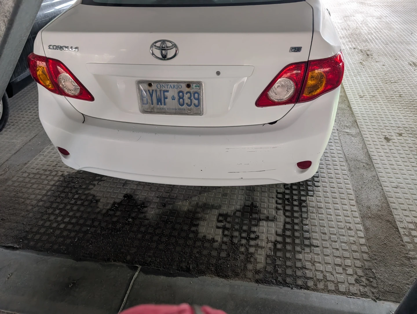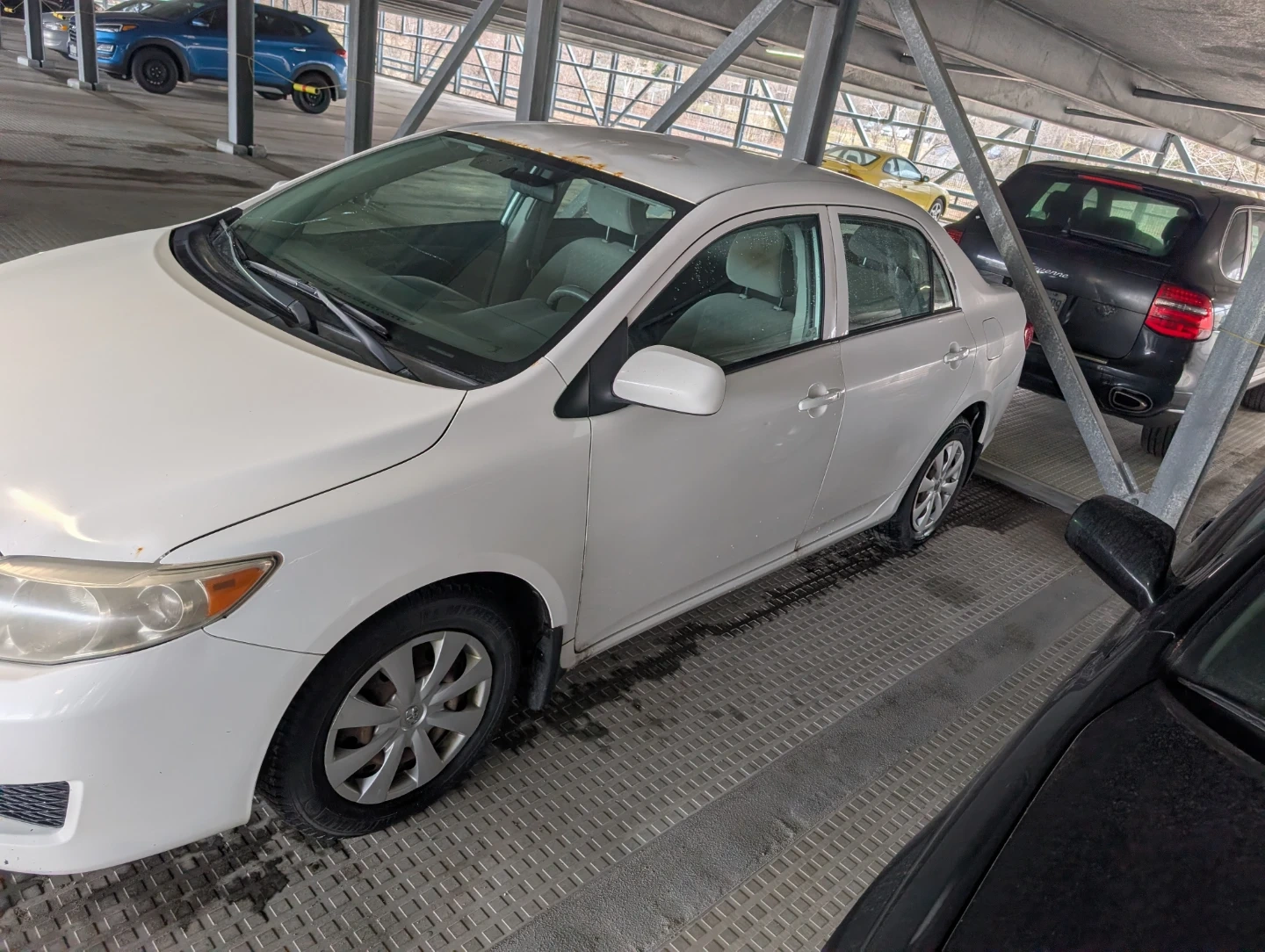 A white four-door Toyota Corolla sedan. The interior is cloth upholstered. Car is sold as is and has 380km all hi-way miles