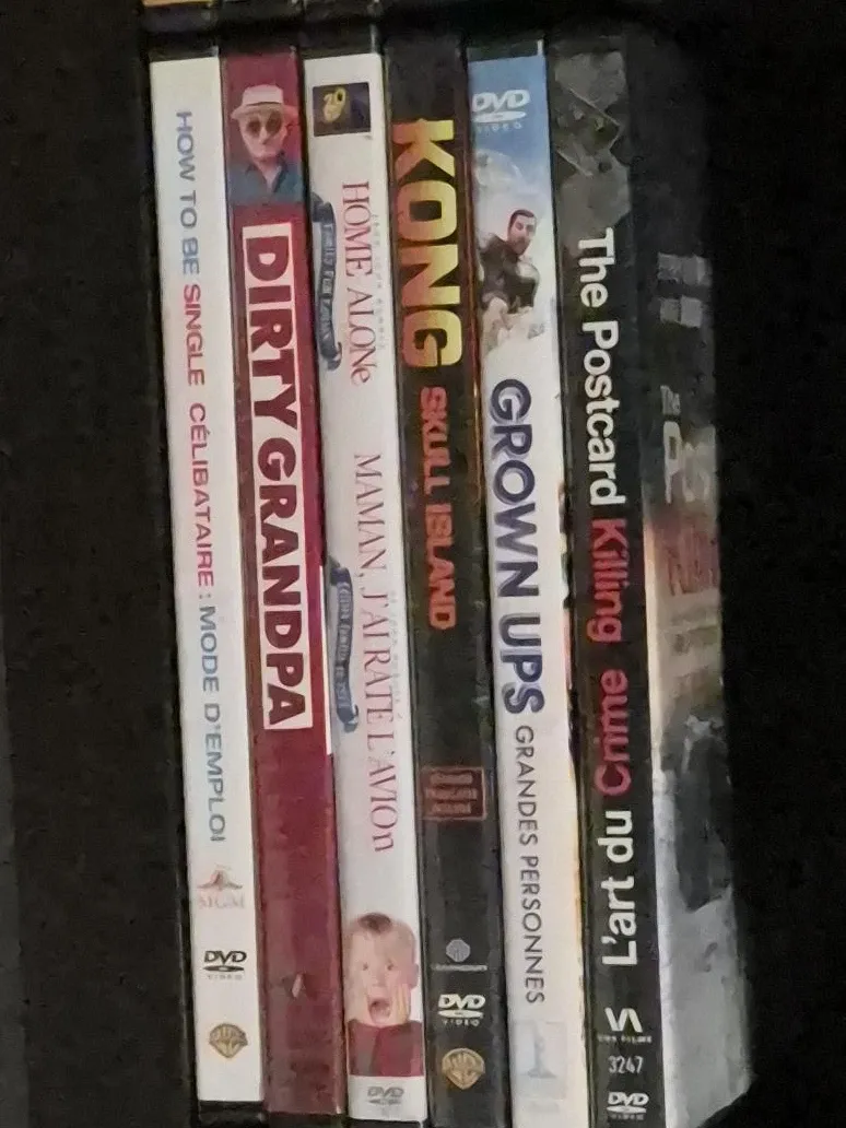 Collection of various DVD movies including comedies, action, and family films. All discs are in standard DVD format. Titles vary across genres. 5 each or 30 for all