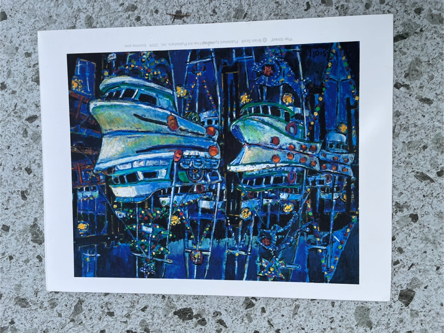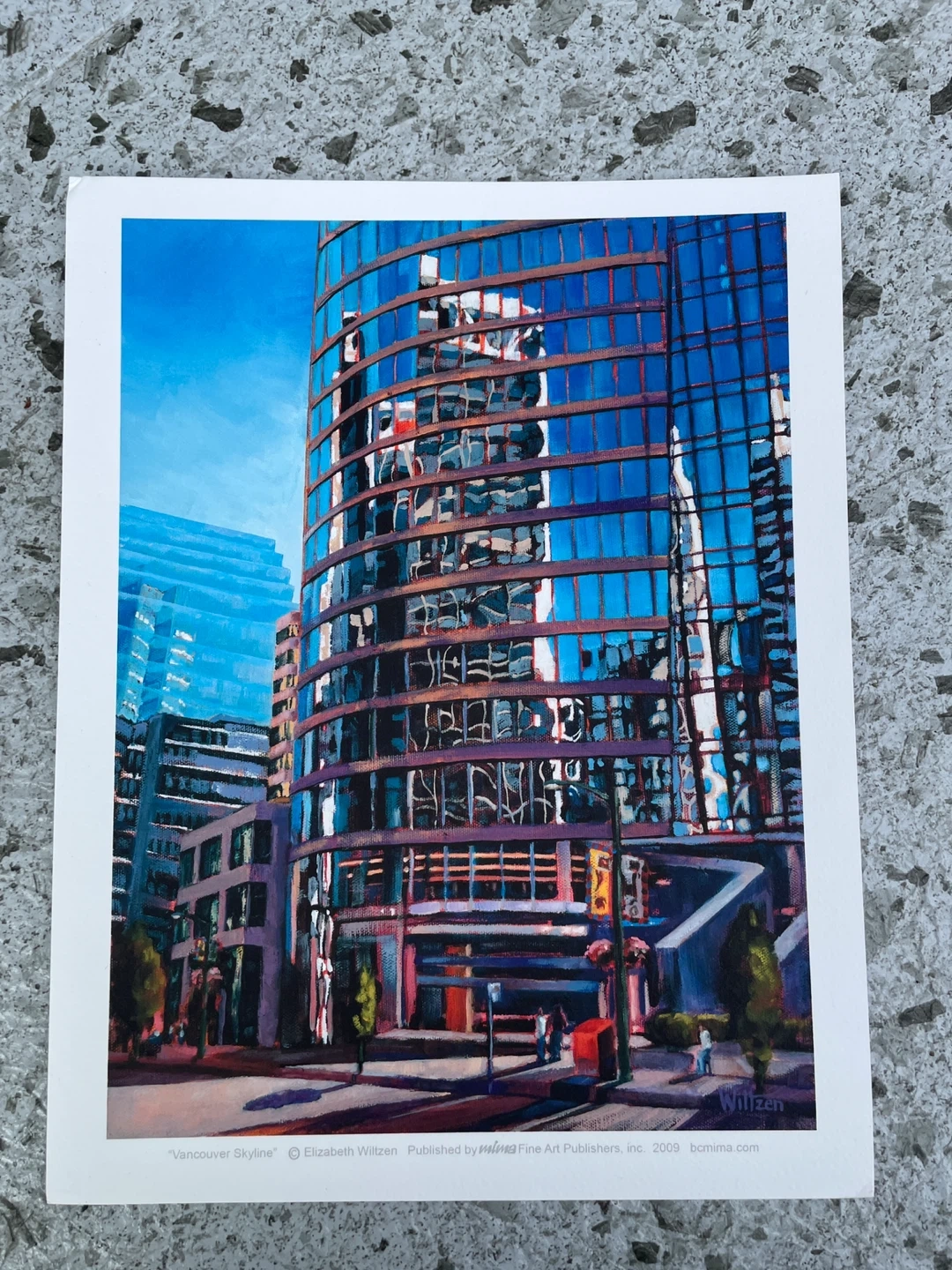 Canadian Artists Collection Vancouver Skyline Pier Street Art Print Set 8.5" x 11" thicker stock, feels quality. Set of two colourful Canadian Artists Collection art prints published by Mima Fine Art. This lot includes “Vancouver Skyline” by Elizabeth Wilzen and “Pier Street” by Brian Scott. The Wilzen piece captures a reflective downtown Vancouver glass tower rendered in vivid blues and urban tones, while the Scott artwork features a lively carnival ride scene glowing with lights against a deep blue nighttime background. $35 for one or 60 for the pair.