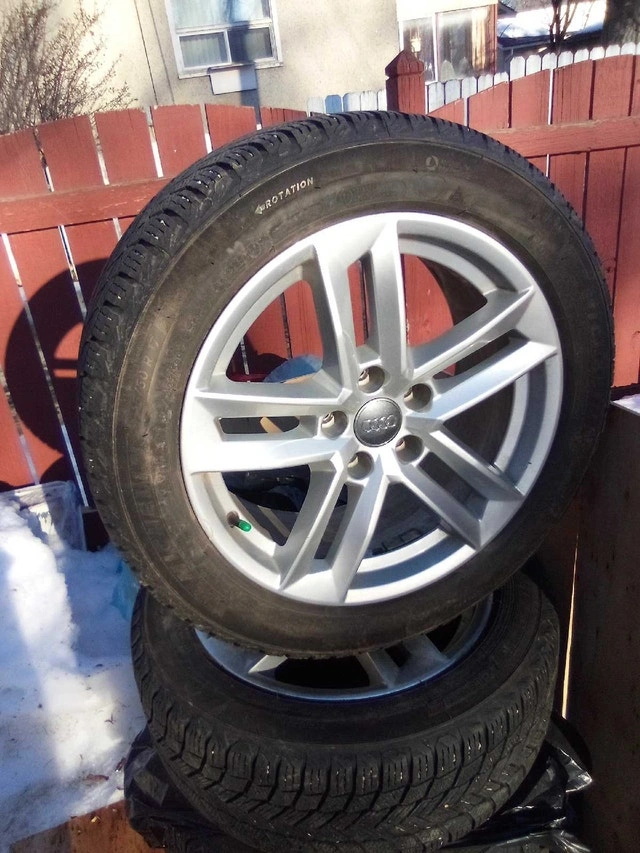 Set of used Michelin x-ice snow winter tires mounted on factory Audi rims. Tire size is 225/50R17. Rims are 5-bolt from a 2017 Audi A4 and will fit many other Audi models. Ready for snowy conditions!call at 780 909 1261