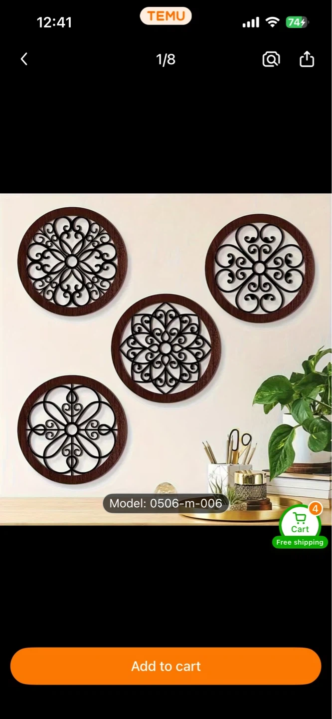 Buy & SellSet of 4 Round Floral Wood Wall DecorSet of 4 Round Floral Wood Wall Decor$10Set of four round wood wall decor pieces with intricate floral designs. Features a dark brown wood frame and a black wood cutout. Model 0506-m-006.ConditionNewDimensions7.5 inchWHERE TO MEETM1J 1K9View MapSELLERverifiedRubinaEglinton E600 reviews1 chats·1 favorites·9 viewsSEND CHAT TO SELLERHi Rubina! I’m interested in your listing.Hi Rubina! I’m interested in your listing.Get the Karrot app to chatSign In to chat