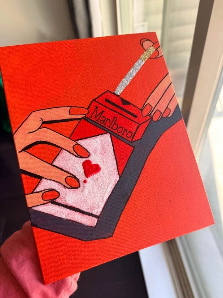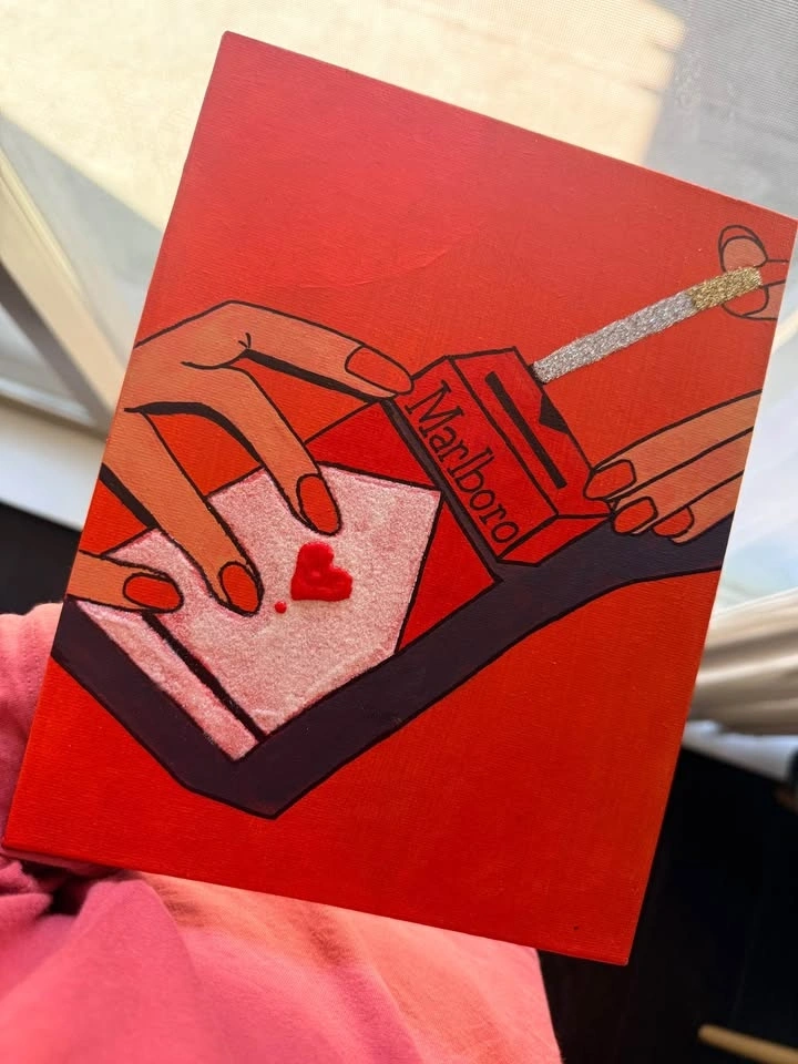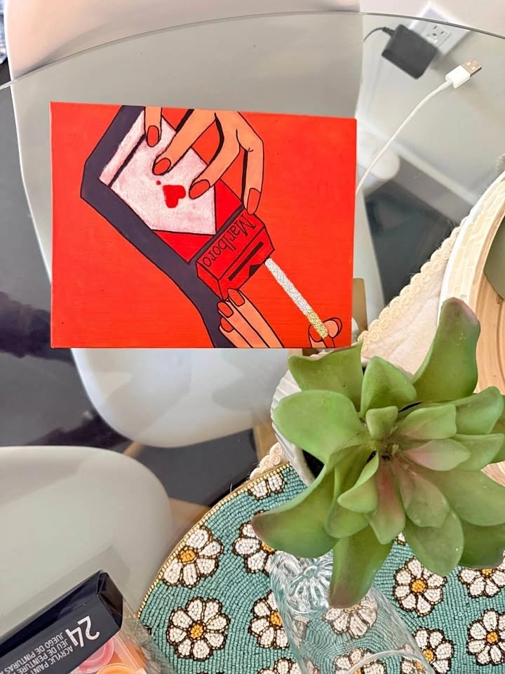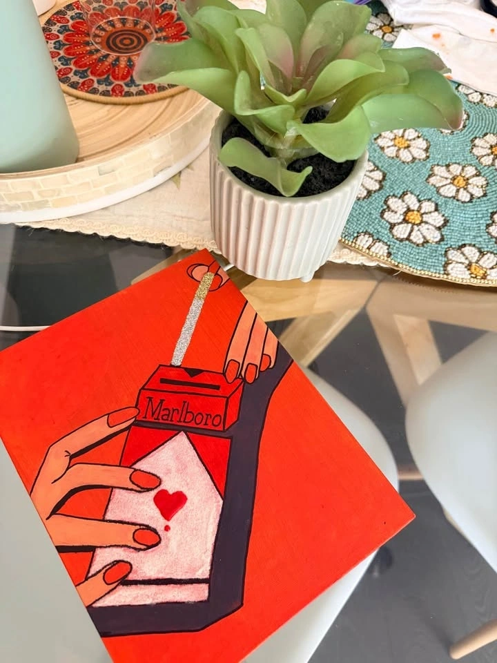 Handmade painting, bright and bold that will quickly elevate your space making it brighter and vibrant. You can either decorate it on a shelf or just simply stick to the wall using a double sided tape.