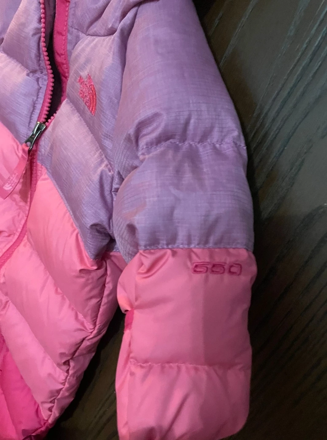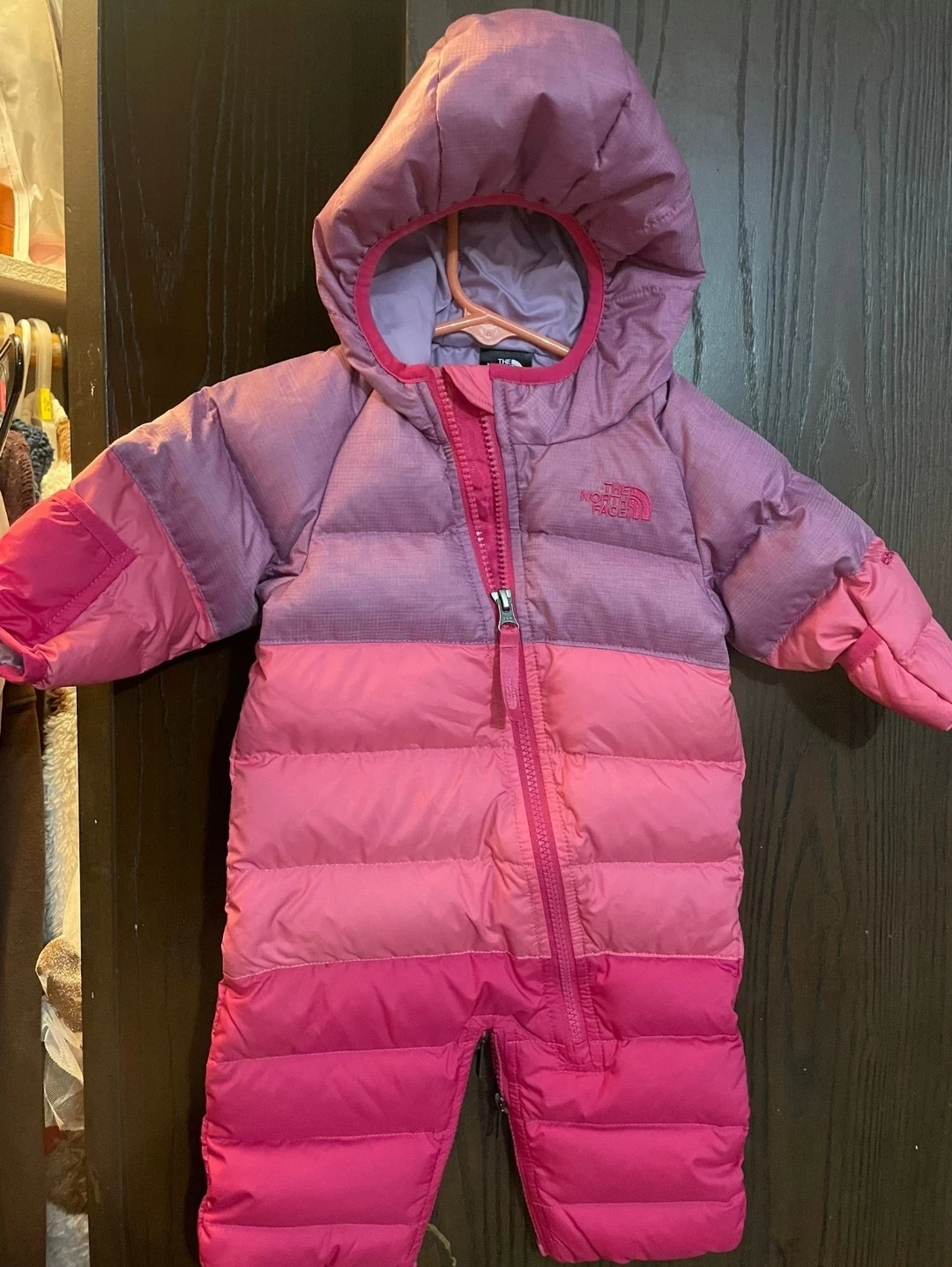 Selling a cute The North Face snowsuit in pink and purple! It's a 550 down filled suit, perfect for keeping your little one warm this winter
