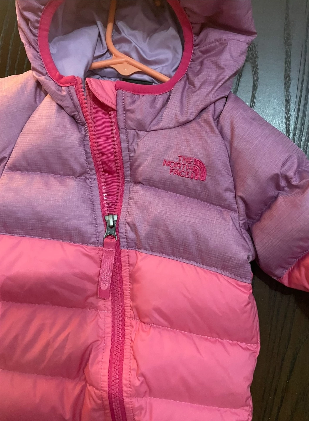 Selling a cute The North Face snowsuit in pink and purple! It's a 550 down filled suit, perfect for keeping your little one warm this winter