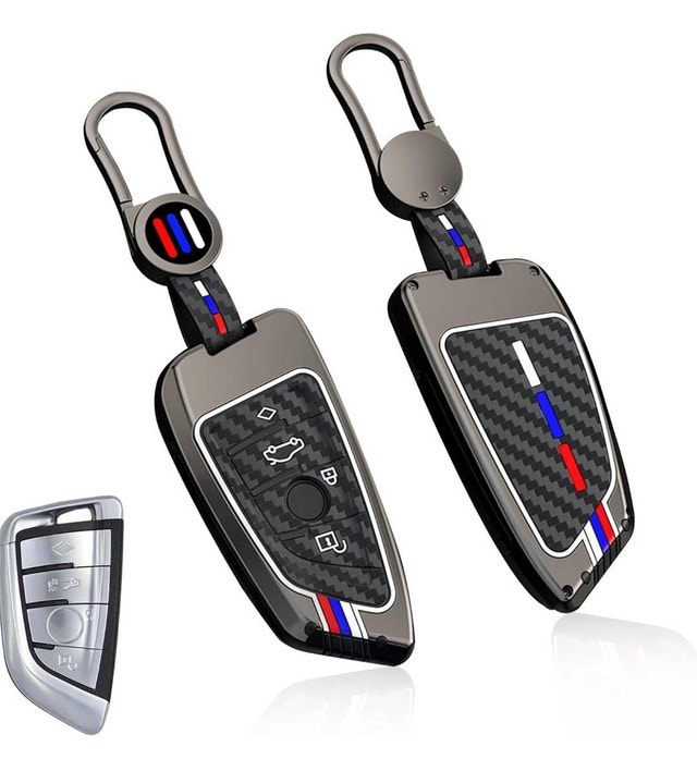 In great condition. This premium gunmetal finish cover makes your BMW fob look better than ever and protects it. It also glows in the dark! Compatible with 2'F45/F46 (2015-2018), 3'G20/G21 (2019-2023), 5'G30/G31 (2017-2022), 6'G32 (2017-2023), 7'G11/G12 (2016-2022), 8'G14/G15/G16 Gran Coupé (2018-2023), X1 F48 (2016-2022), X2 F39 (2018-2023), X3 G01 (2018-2023), X4 G02 (2018-2023), X5 F15/F85 (2013-2023), X6 F16/F86 (2015-2023), X7 G07 (2020-2022), Z4 G29 (2017-2023).