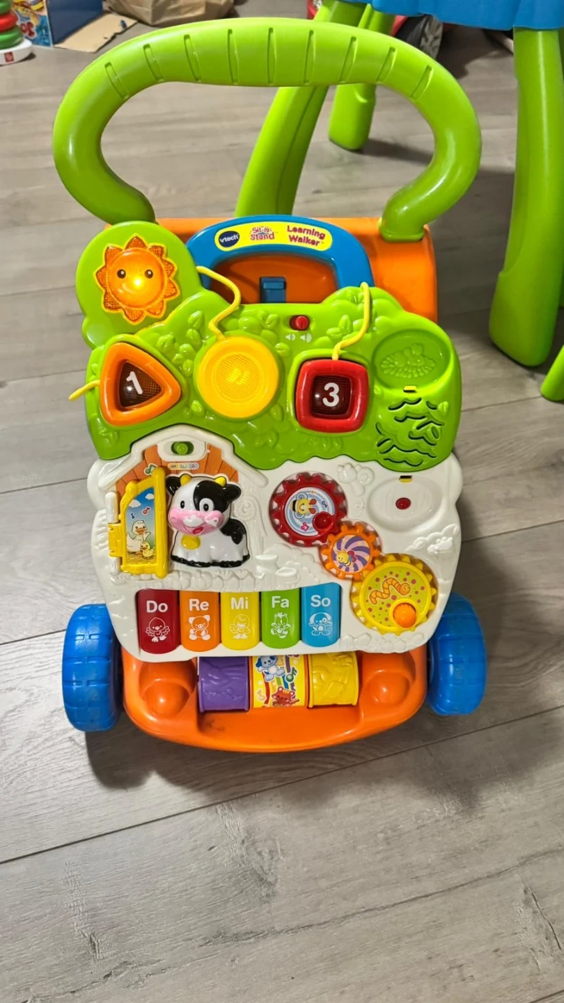 This VTech learning walker helps your little one stand and play. It has a detachable activity panel with lights and sounds. Great for developing motor skills!