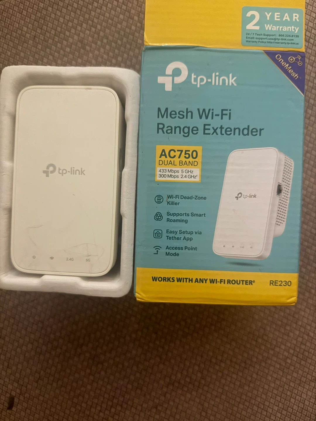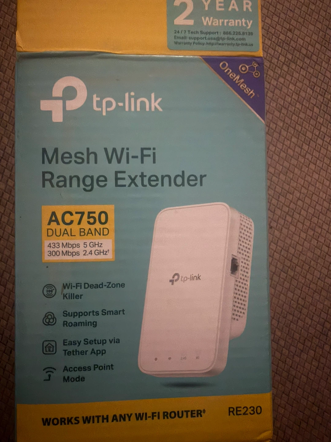 This TP-Link AC750 Dual Band Mesh Wi-Fi Range Extender boosts your network coverage. It offers 433 Mbps on 5 GHz and 300 Mbps on 2.4 GHz bands. Supports Smart Roaming and includes an Access Point Mode. It's designed to eliminate Wi-Fi dead zones.