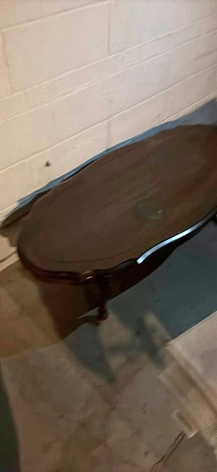 Elegant dark brown coffee table. Oval shape with carved details. Measures 1.3m long, 0.6m wide, 0.4m high. Feel free to message if you have any questions!