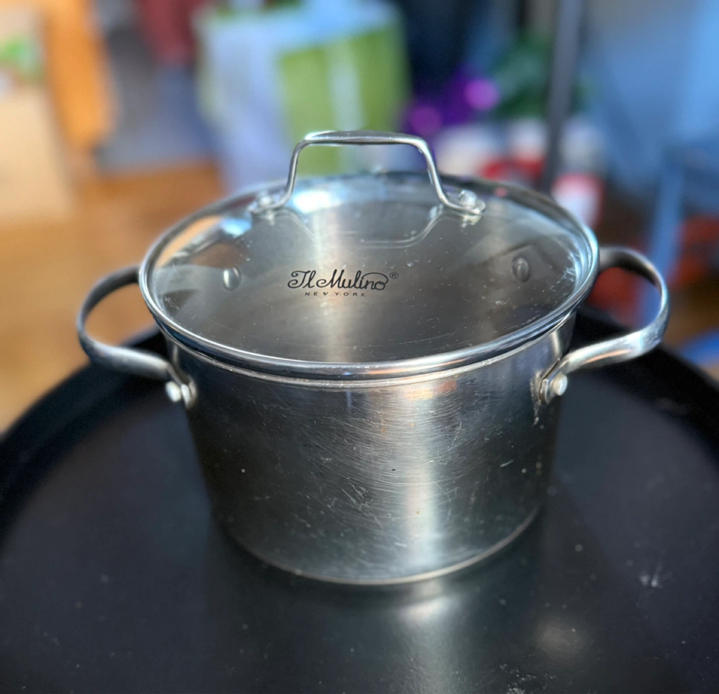 Selling a Il Mulino New York stock pot with a glass lid. It's in good condition and ready for your next cooking story.