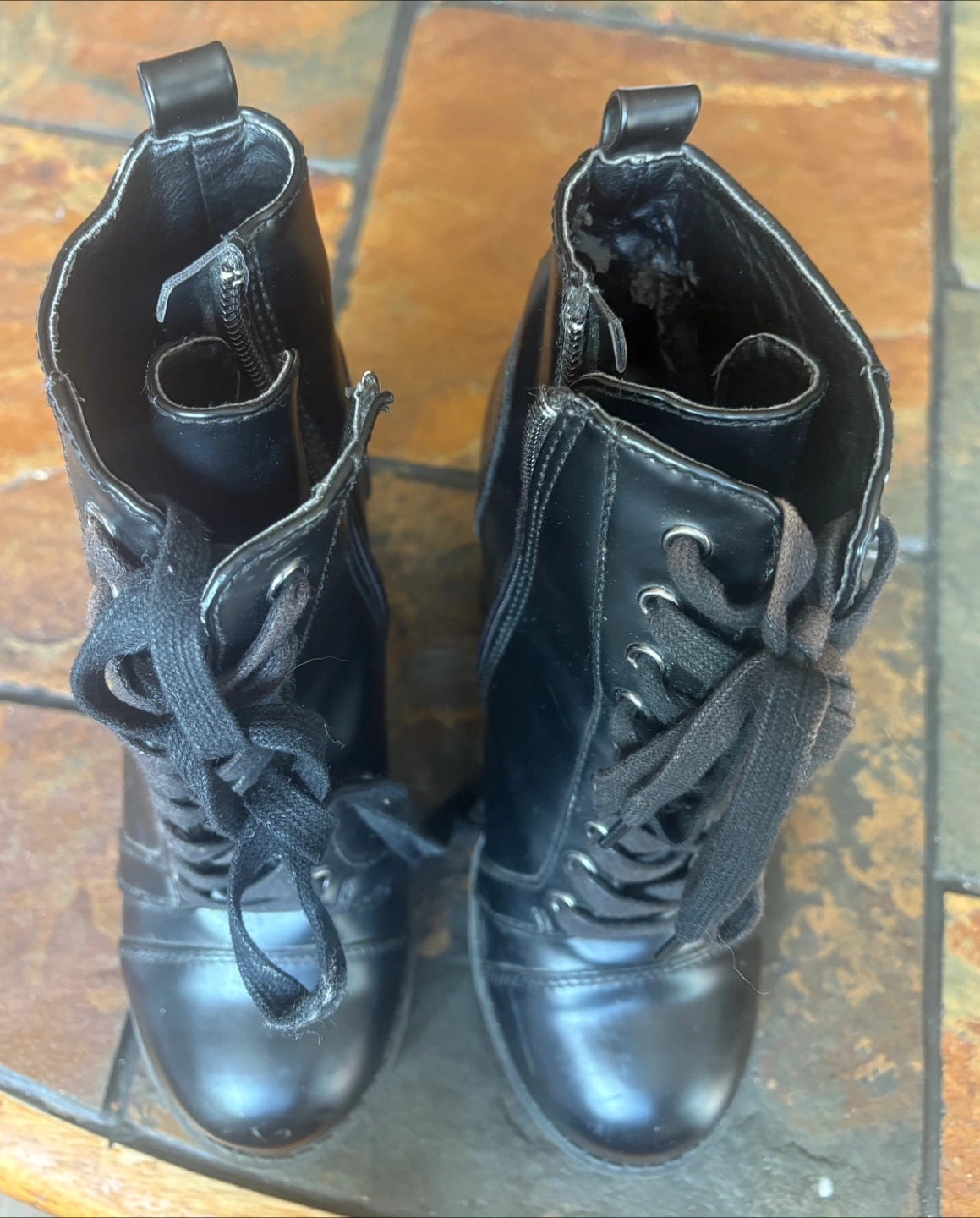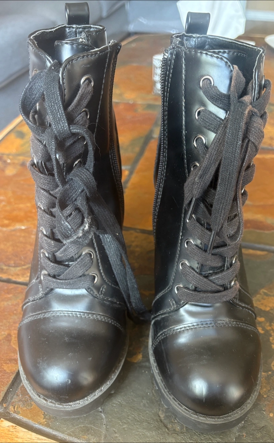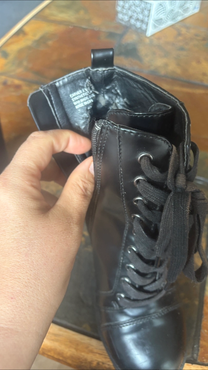 Selling a pair of Carver black lace-up boots in size 7.5. They have a synthetic upper and sole. These boots are in good condition and ready for a new home!