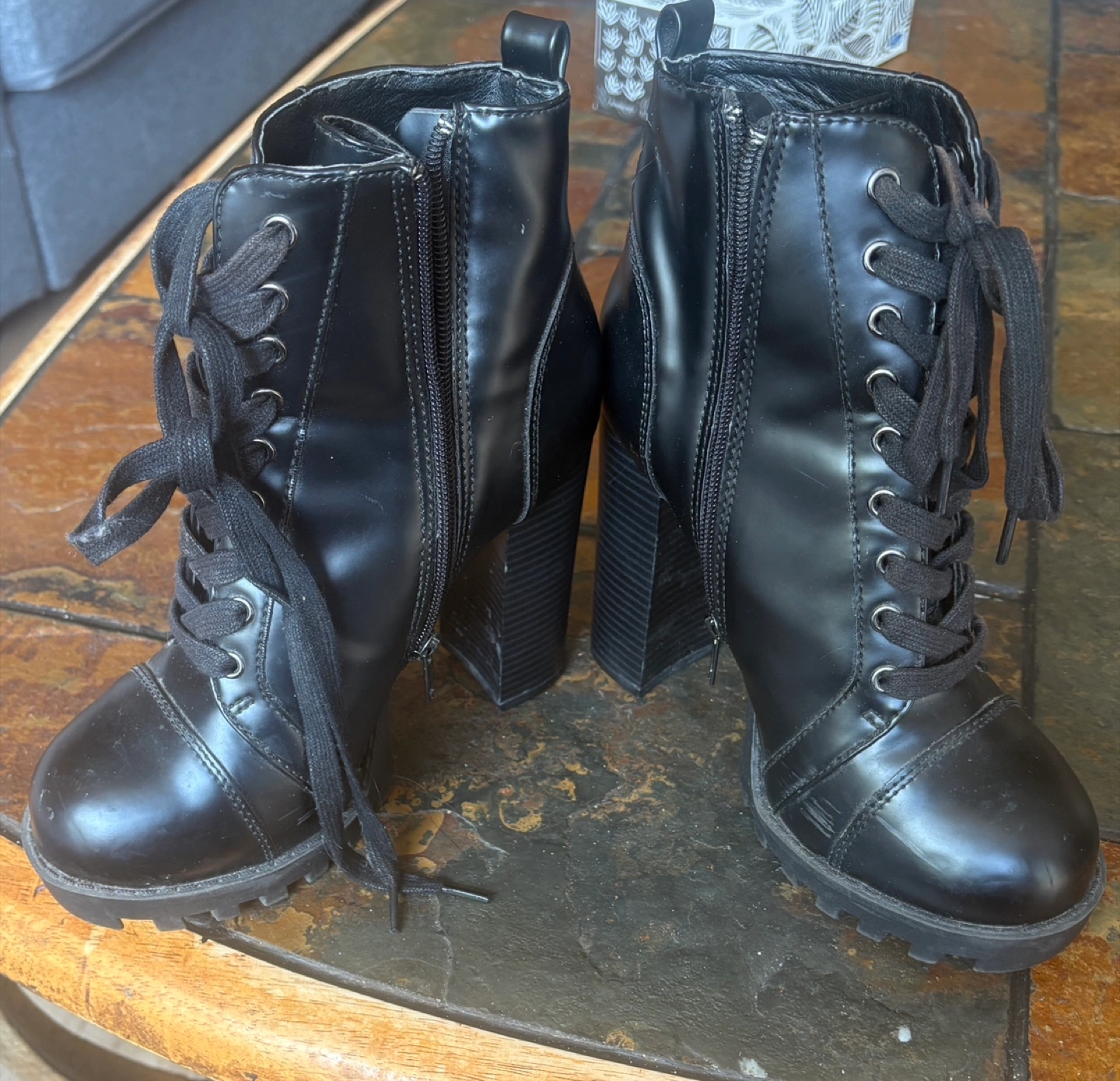Carver Black Lace-Up Boots - Size 7.5