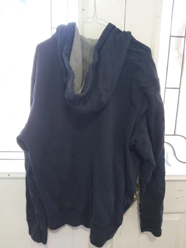 Men's / Unisex navy blue Aeropostale zip-up hoodie. Features a grey interior hood and large embroidered logo. Size L/G.