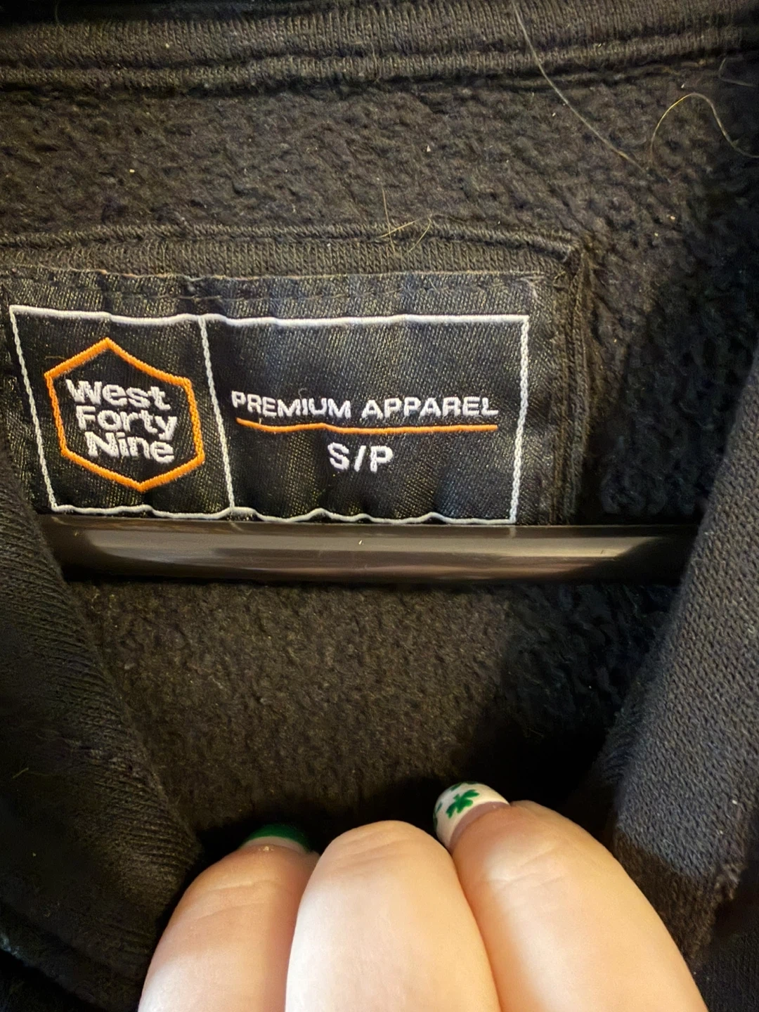 Black hoodie with "Lazy Daze" alien graphic on the back and a small graphic on the front. It's a size S/P. Premium apparel material.