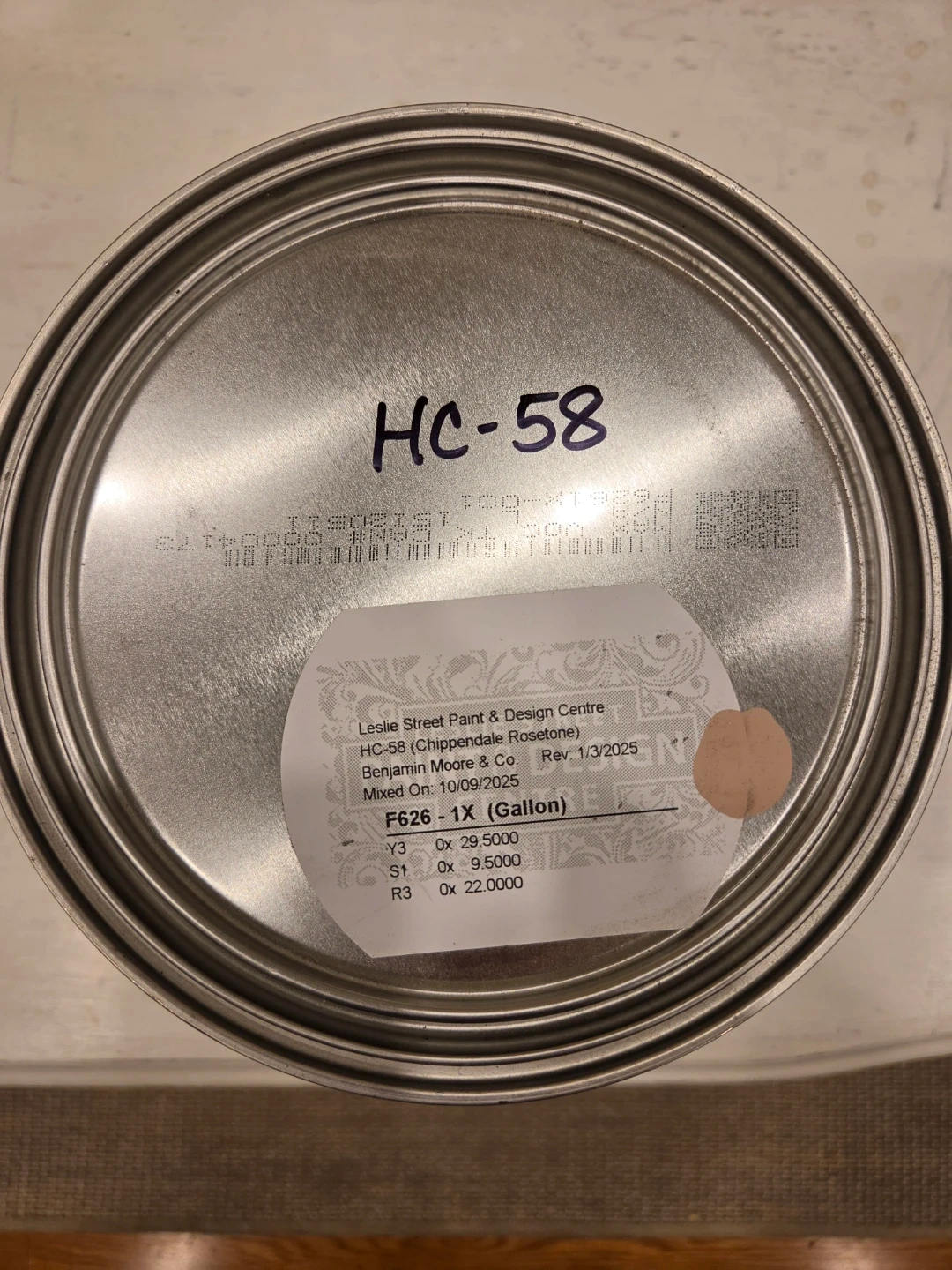 Benjamin Moore Ben Interior Acrylic Paint & Primer in Eggshell finish. Colour is HC-58 (Chippendale Rosetone). This is a 1 Gallon can, or 3.72 L. It was mixed on 10/09/2025.