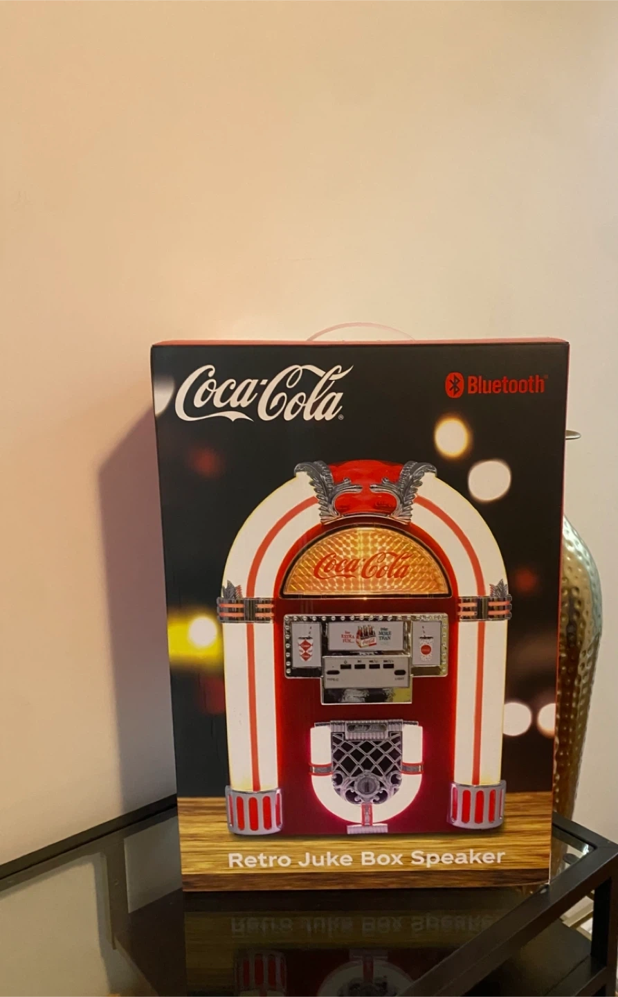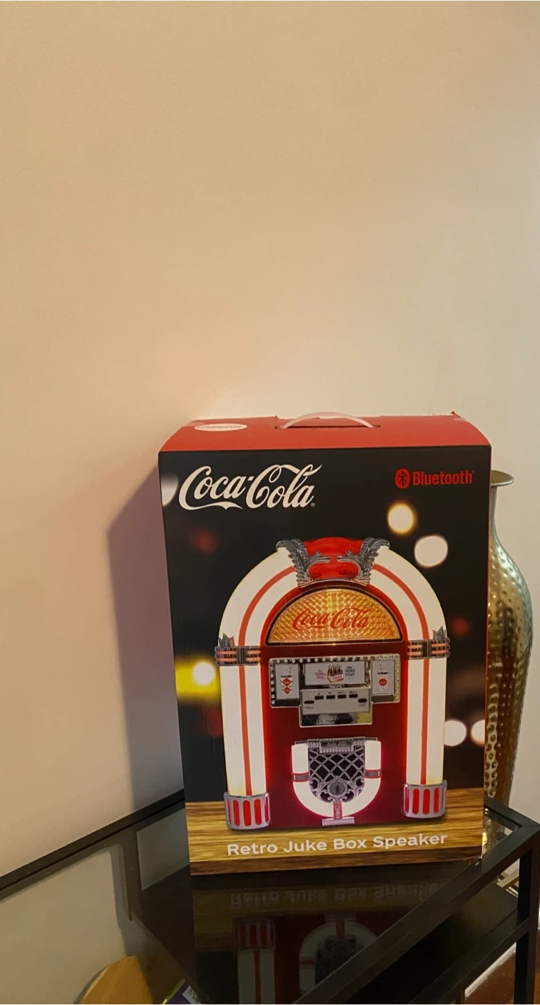 This is a Coca-Cola branded Retro Juke Box Speaker with Bluetooth connectivity. It's designed to look like a classic jukebox. The speaker is like new.