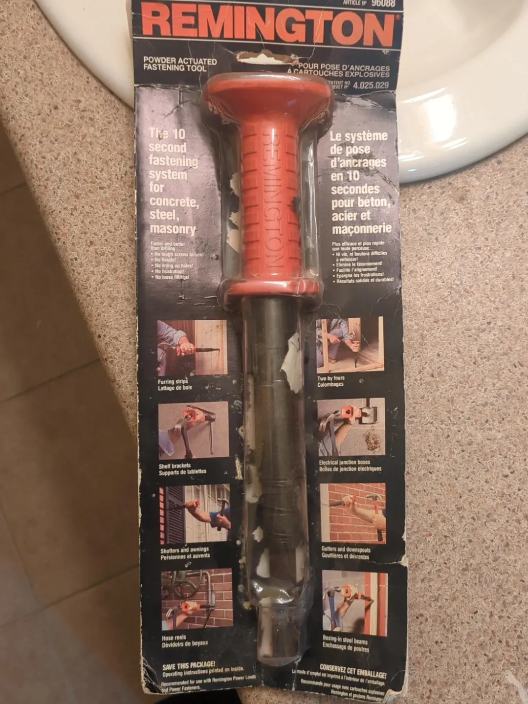 This is a Remington powder actuated fastening tool for concrete, steel, and masonry. It's faster and better than drilling, with no tough screws to turn. It's recommended for use with Remington Power Loads and Power Fasteners.