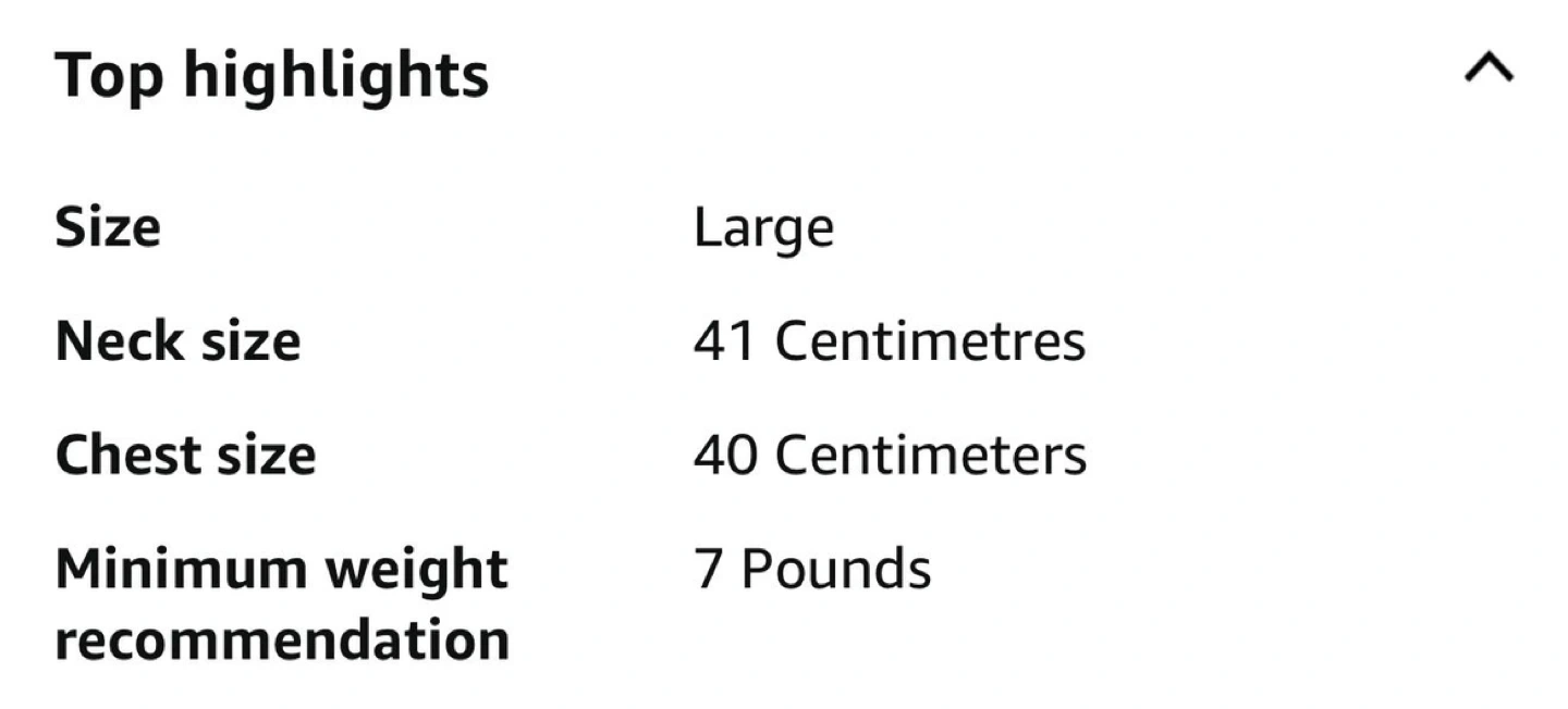 AOFITEE dog winter coat for fullbody dogs. It's waterproof and a pet puffer jacket snow suit with legs. Chest size 40 cm, neck size 41 cm. Minimum weight recommendation is 7 pounds.