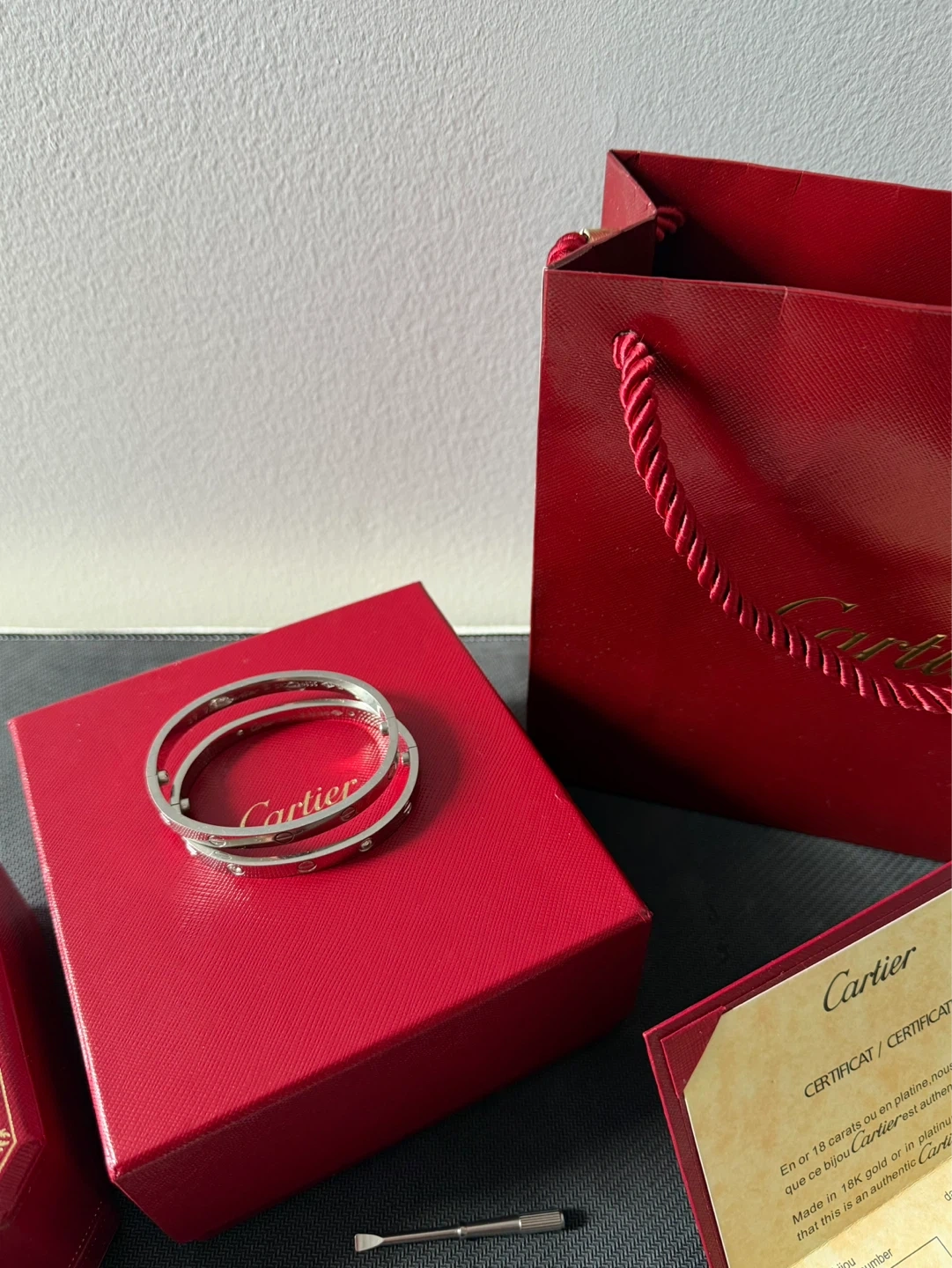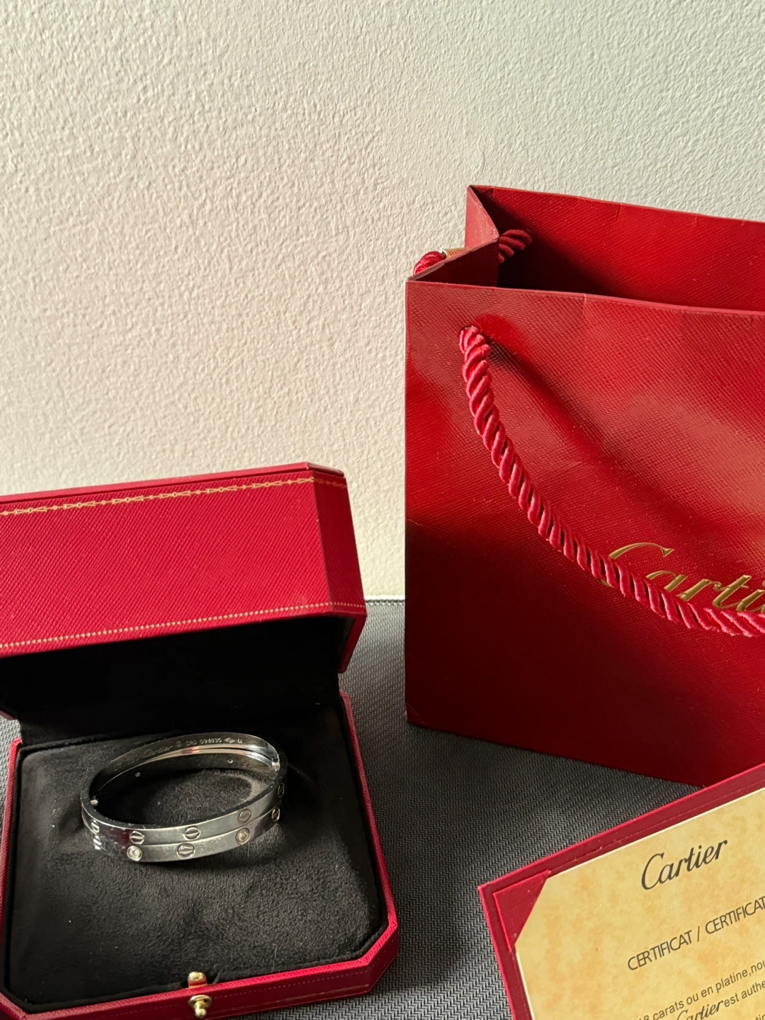 Buy & SellCartier Love Bracelet 18K White Gold SetCartier Love Bracelet 18K White Gold Set$1,000Pre-loved Cartier Love Bracelet in 18K white gold, size 17.ConditionGoodBrandCartierWHERE TO MEETCheck LocationView MapSELLERverifiedInes MBrant Hills1055 reviews0 chats·1 favorites·18 viewsSEND CHAT TO SELLERHi Ines M! I’m interested in your listing.Hi Ines M! I’m interested in your listing.Get the Karrot app to chatSign In to chat